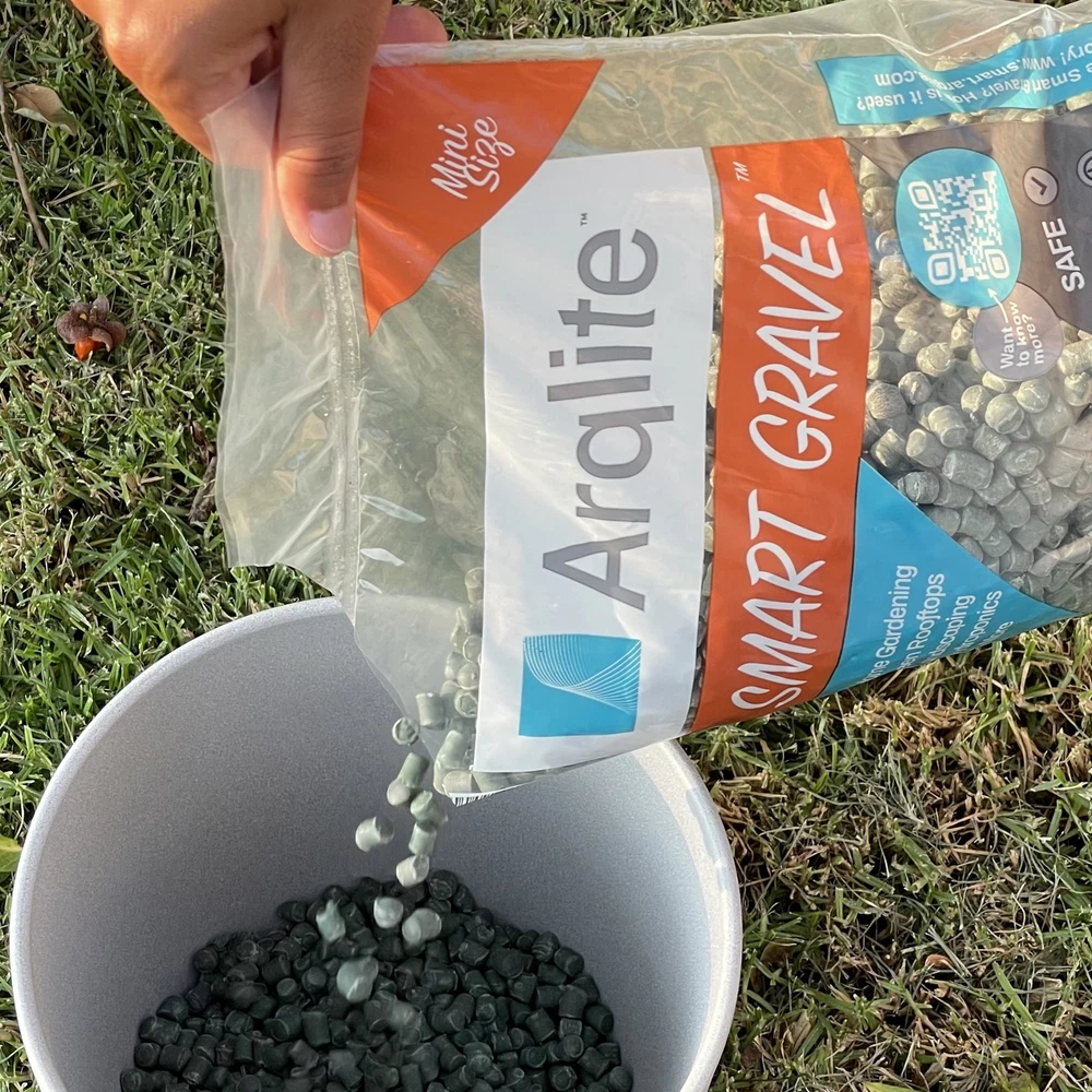 Arqlite Smart Gravel Recycled Drainage Medium - Mini Size (1 Gal ) PRODUCT DESCRIPTION Prevents brown spots, root rot, and dropping leaves! Key Product Features Supports increased growth and stronger plant health by protecting from overwatering. 3x lighter than mineral gravel and lighter than expanded clay, making transportation and installation a breeze. Save your back and your wallet. Mini size (1/8 - 1/2 in) is ideal for drainage and decoration on small pots, planters, succulents, cacti, orchids, indoor gardening, hydroponics, propagation & more. A single bag will be enough for up to 4 pots (6in base). Made in the USA with recycled materials. SMART GRAVEL is an eco-friendly product, made entirely from recycled plastics. Use ARQLITE in the base of your pots to keep your roots healthy by improving drainage and avoiding excess water. You can also use ARQLITE as a top dresser, to decorate your pot and preserve soil moisture. Smart Gravel MINI size (1/8 - 1/2 in) is ideal for small pots, planters, topping, decoration, succulents, cacti, orchids, & more. Avoid root rot with effective drainage! We are fighting plastic pollution together. For every bag of ARQLITE Smart Gravel that you purchase, you are deviating over 4 lbs of plastic from the environment. ARQLITE Smart Gravel - Eco Friendly Plant Drainage for Healthy Roots | Cactus, Succulents, Small Pots (1 Gal, Mini Size Bag)