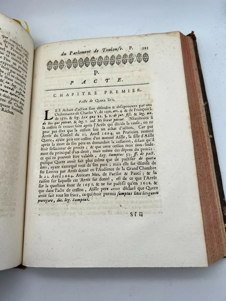 Arrests de la Cour du Parlement de Toulouse, recueillis par feu M. Jean Albert, docteur & avocat audit Parlement Nouvelle édition, revue, corrigée & augmentée A Toulouse, chez Gaspard Henault, imprimeur & marchand libraire, rue des cordeliers et de la grande observance 1731 Avec privilège du Roi (T4) N'oubliez pas de m'ajouter à votre liste de favoris! .