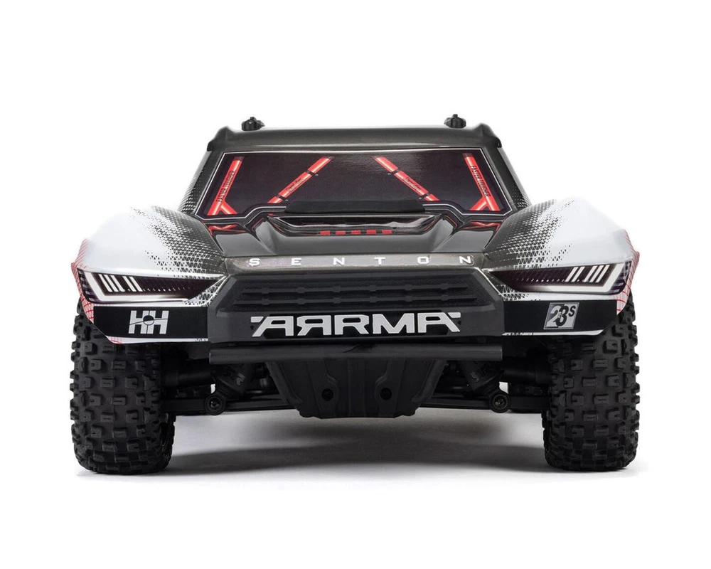 High-Performance Ready-to-Bash R/C Truck The Arrma® Senton™ 223S BLX 1/10 Brushless RTR 4X4 Short Course Truck offers an accessible way for drivers to experience the thrill of high-speed bashing. Designed for brushless beginners and pros alike, it combines durability, all-terrain capabilities, and speeds reaching over 50 mph with 3S power. This 4X4 truck arrives ready-to-run, giving you both powerful performance and the confidence to tackle challenging terrains with ease. All you need to add is your battery and charger, and you're ready to race. About the Senton 223S BLX Advanced Electronics & Brushless Power The Senton 223S BLX comes equipped with high-quality Spektrum electronics, including a powerful 3100kV brushless motor and an 80A two-in-one ESC and receiver unit that's water resistant for reliable performance on any terrain. This setup enables exceptional speeds on a 2S battery and even higher top speed thrills with 3S power, giving you control over how fast you go. With Dynamic Stability Control (DSC) offering four selectable modes, drivers can benefit from automated steering corrections on various surfaces, increasing control and confidence. Heavy-Duty Drivetrain & Center Differential Built tough for bashing, the Senton 223S BLX features a super-strong 4X4 drivetrain with a center differential and metal gears to ensure durability under extreme conditions. The all-metal gear differential efficiently transfers power to the wheels, enhancing traction and stability during high-speed runs. This drivetrain is engineered to endure challenging terrains, while the center differential distributes power evenly, providing the ideal balance for short course truck performance. Durable Design & Aggressive Styling The Senton 223S BLX is designed to handle tough terrains while looking sharp with its aggressive short course body. Its impact-absorbing composite bumpers, strong composite nerf bars, and high side guards protect the truck from impacts and debris. The hidden body retention system and clipless body design offer easy access to the internals while keeping the body securely in place, so you can bash without worry. Features: 2S and 3S LiPo compatibility for versatile power options Capable of 35+ mph with 2S and 50+ mph with 3S power Dynamic Stability Control (DSC) with four selectable modes Strong 4X4 drivetrain with metal-geared center differential Adjustable, oil-filled coil-over shocks for smoother rides Impact-absorbing composite front and rear bumpers Aggressive, closed-wheel short course body for added realism Ventilated composite chassis to keep components cool High side guards to protect from dirt and debris Hidden body retention system with clipless design for easy access Includes: (1) Arrma Senton 223S BLX 1/10 Brushless RTR 4X4 Short Course Truck (1) Pre-Installed Spektrum SLT 80A Two-in-One ESC/Receiver with DSC and IC5 Connector (1) Pre-Installed Spektrum 3100kV Brushless Motor (1) Spektrum S662 Metal-Geared 25T Water-resistant Digital Servo (1) Spektrum SLT3 2.4GHz Transmitter (4) AA Batteries 2.5mm and 3.0mm Hex Wrenches Product Manual Needed To Complete: (1) 2S or 3S LiPo Battery with IC5 Connector (7.4-11.1V) (1) Compatible Battery Charger Specifications: Scale 1:10 Drive 4WD Power Source 2S-3S LiPo (7.4-11.1V) Length 21.97in (558mm) Wheelbase 12.87in (327mm) Width 12.01in (305mm) Height 8.27in (210mm) Weight 125.22oz (3550g) Electronics Motor Brushless ESC Brushless Connector IC5 Servo Metal-Gear - Digital (25T) Wheels Front - Rear - Hex 14mm Tires Front dBoot Fortress SC Rear dBoot Fortress SC Assembly Level RTR* *Tech Note: Ready-to-Run models come equipped with all electronics and include the transmitter needed for use. Please check the "Needed To Complete" above to make sure you have everything you need to get out and enjoy your RC model. Manuals: User Manual About Us | View Store