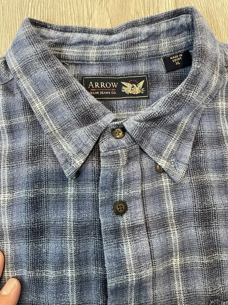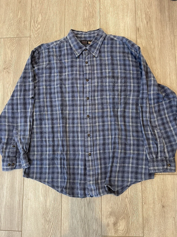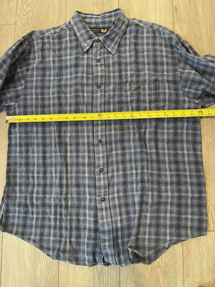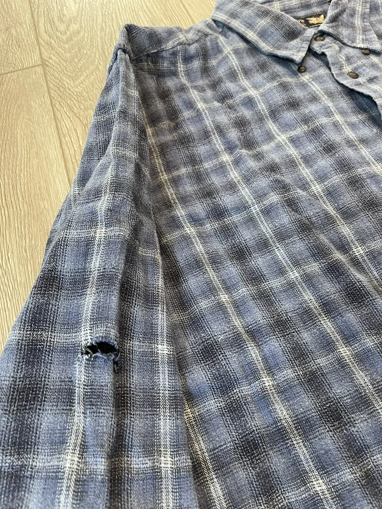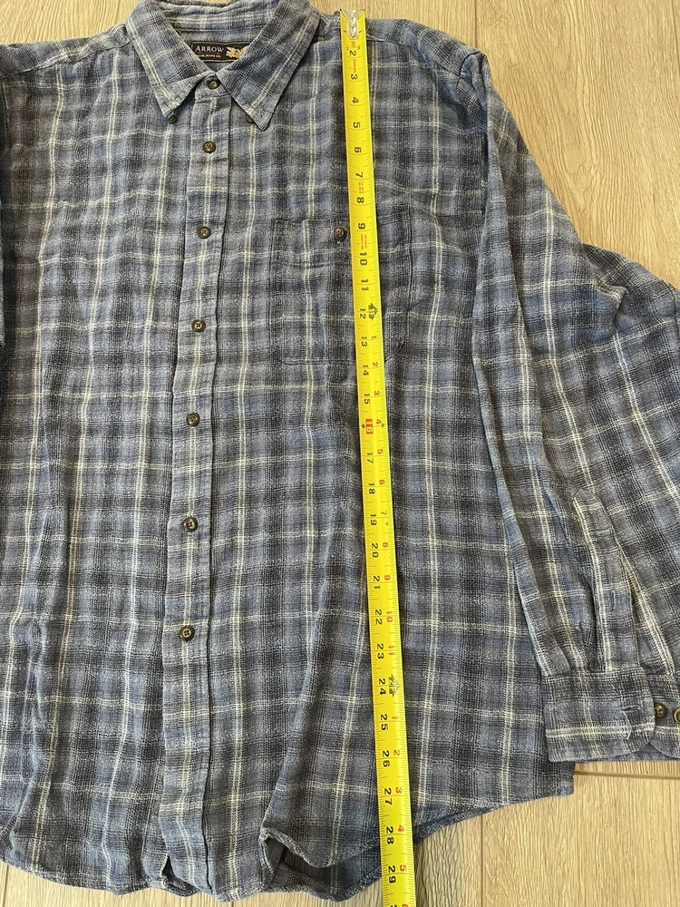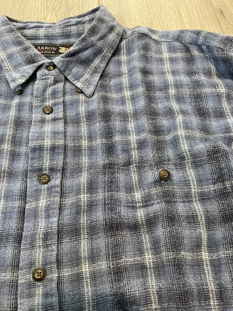 This button down shirt is in pre-owned condition with a 1/2 inch rip hole on the right arm sleeve. Please see photos for other details thanks!