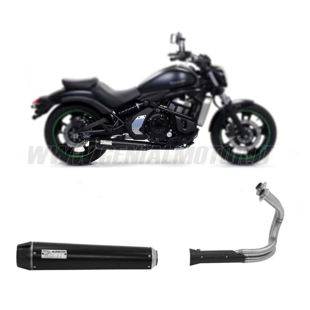 Arrow Headers+Exhaust Racing Nichrom Black for KAWASAKI VULCAN S 650 CAFE' 2017 > 2020 Product Code: 74003MI + 74505RBN Brand Motorcycle: KAWASAKI Model Motorcycle : VULCAN S 650 CAFE' Compatibility: {{year_systen}} Approval Exhaust: RACING Approval Moto: RACING Product Code: 74003MI Headers material: stainless steel Junction (outlet) diameter (mm): 54,00 Oxygen sensor plug: NO CO sensor plug: YES DB Killer: NO Weight (Kg): 1,95 Product Code: 74505RBN Silencer material: stainless steel Dark Rear endcap material: aluminium Dark Silencer inner parts material: stainless steel Silencer mounting: welded mount Silencer body length (mm): 450,00 Junction (inlet) diameter (mm): 54,00 Junction (outlet) diameter (mm): 54,00 Oxygen sensor plug: NO CO sensor plug: NO DB Killer: YES Weight (Kg): 4,20 Ref: 148988_74003MI|74505RBN