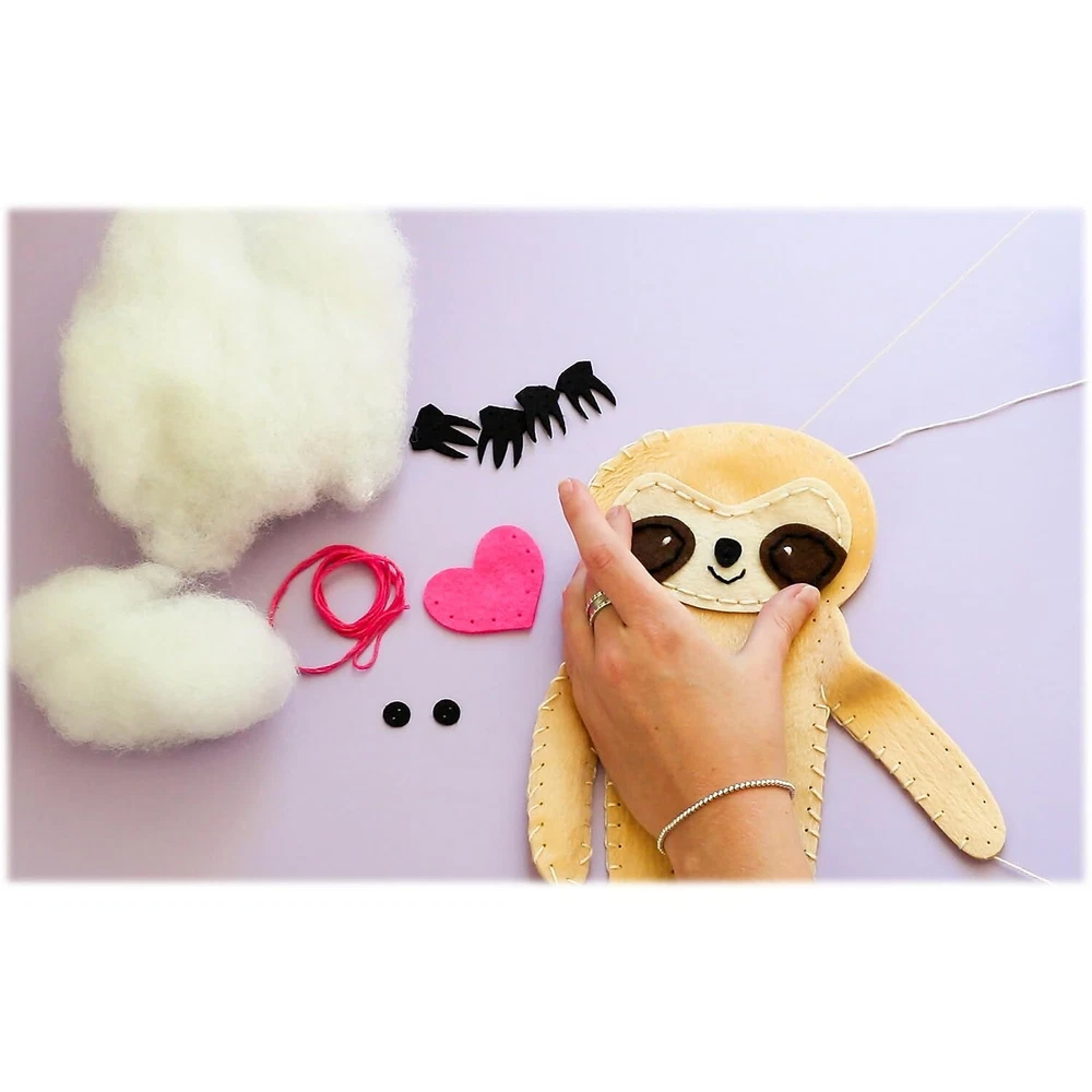 Art 101 Crafts Sew Your Own Sloth Stuffed Animal comes with everything you need to make a soft and cuddly new friend! With 13 precut felt pieces to assemble the sloth, 4 matching colors of precut yarn, 1 safety sewing needle, 1 bundle of stuffing, and a project guide, this kit has all you need to make sewing your sloth easy and fun! The included plastic sewing needle weaves the yarn easily through the precut holes, making this project easy for any age or skill level. To make your sloth plush and huggable, there is a bundle of soft stuffing included. the included project guide for the easiest (and cutest) sewing project ever! Getting to stitching with this fun kit! This DIY sewing set includes everything you need to make your own adorable and plush stuffed sloth Includes 13 precut felt pieces, 4 colors of precut yarn, 1 sewing needle, and 1 bundle of stuffing Includes an instruction sheet to guide you through the project Included sewing needle is plastic and kid-friendly, ensuring a safe project for all ages Easy and fun kit that's great for any skill level