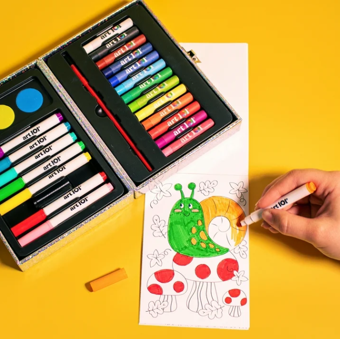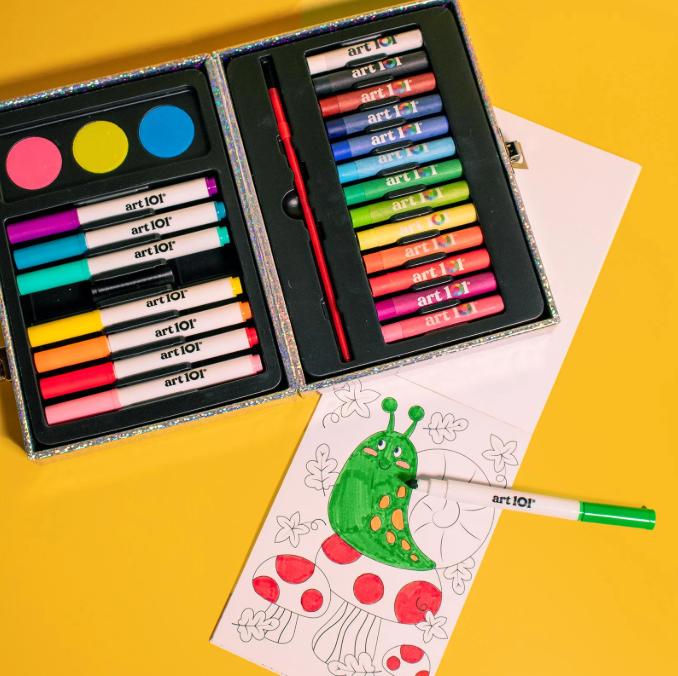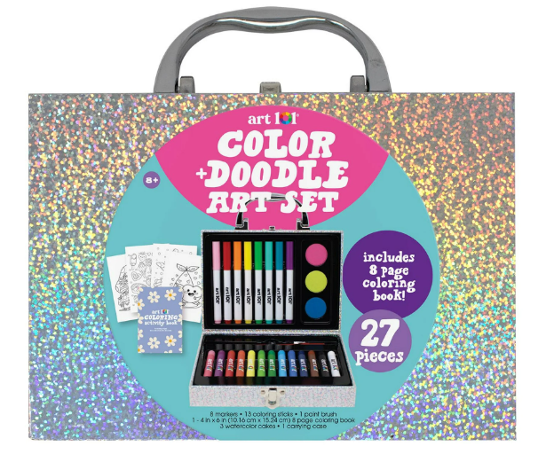 COMPLETE SET: 27-piece art kit featuring markers, coloring chalks, watercolor cakes, and a coloring book perfect for creative expression AGE APPROPRIATE: Specially designed for children 8 years and older, providing safe and engaging artistic activities PORTABLE DESIGN: Comes in a sturdy carrying case with handle for easy transportation and organized storage of all art supplies VERSATILE TOOLS: Multiple artistic mediums including markers and watercolors allow kids to experiment with different coloring techniques CREATIVE PACKAGE: Includes an 8-page coloring book with fun designs that inspire imagination and artistic development Unleash your child's creativity with this comprehensive Art 101 Color and Doodle Art Set! Perfect for young artists ages 8 and up, this 27-piece collection comes packed in a sturdy carrying case for easy organization and portability. The set includes vibrant markers, coloring chalks, and watercolor cakes to explore different artistic mediums. A special bonus coloring book provides plenty of pages for creative expression and skill development. The variety of art supplies allows kids to experiment with different techniques and create colorful masterpieces. Whether they're drawing, coloring, or exploring watercolors, this all-in-one art kit provides everything needed to bring imagination to life. The convenient carrying handle makes it easy to take this creative companion anywhere - from home to school or on family trips. Give your budding artist the tools they need to develop their artistic skills and express themselves through color and design.