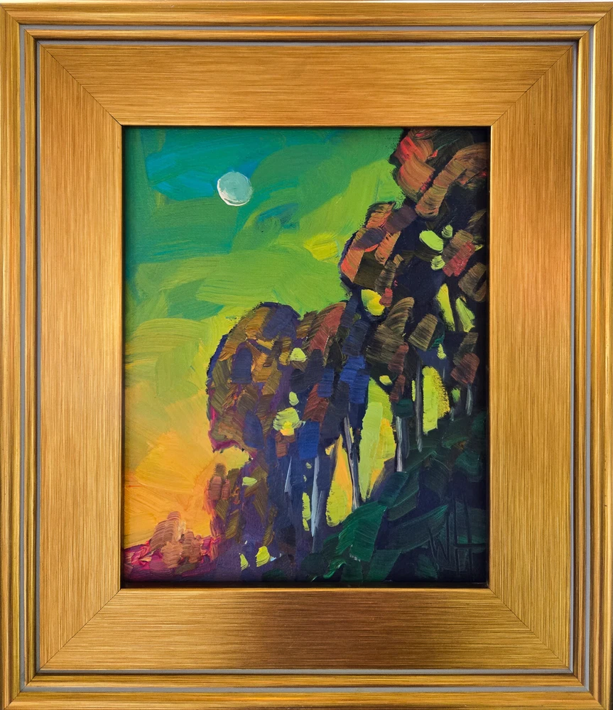 Style: Art Nouveau, Contemporary Art, Impressionism Type: Painting Handmade: Yes Artist: William Hawkins Item Height: 10 in Listed By: Artist Time Period Produced: 2020-Now Main Color: Multi-Color Framing: Unframed Color: Multi-Color Production Technique: Oil Painting Unit of Sale: Single Piece Country/Region of Manufacture: United States Theme: Art, oil painting Features: Signed Item Width: 8 in Material: Canvas, Oil Region of Origin: US Painting Surface: Canvas Panel Date of Creation: 2000-Now Signed?: Signed Signed By: William Hawkins Original/Reproduction: Original Certificate of Authenticity (COA): Yes Period: Ultra Contemporary (2020 - Now) Original/Licensed Reproduction: Original COA Issued By: Artist Signed: Yes Subject: Forest, Landscape, Sky, Sunsets, Moon Size: Medium (up to 36in.) Year of Production: 2024