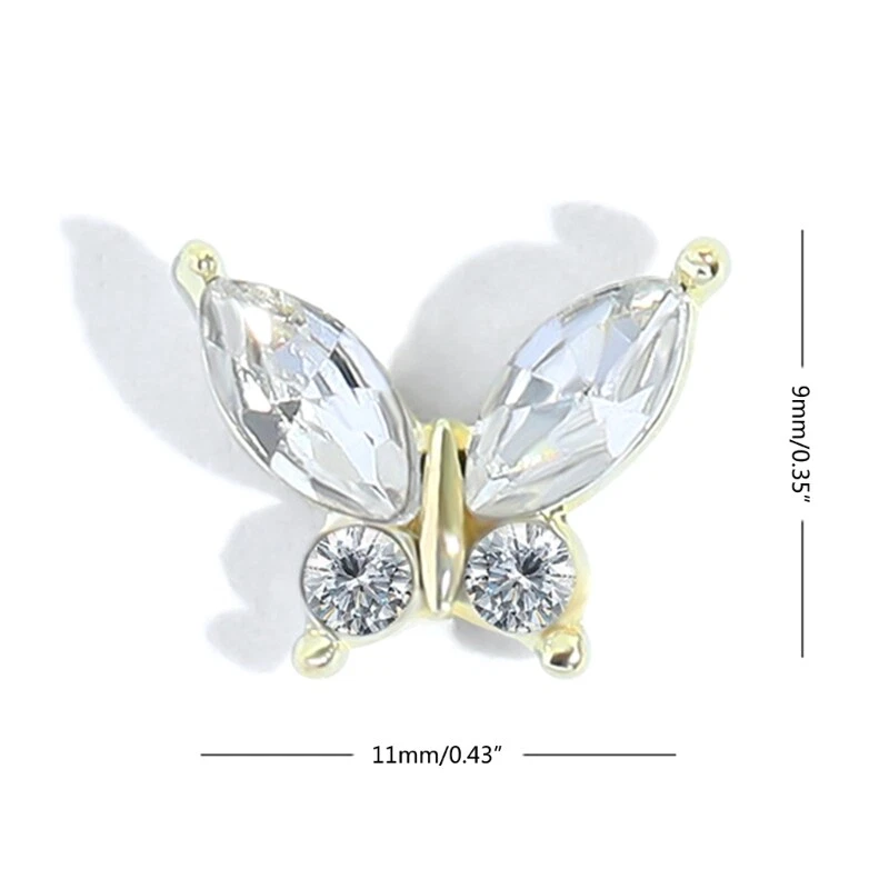 Features: Alloy Jewelry: Our decorations are glass and alloy material, they are hard and not easily break, and these luxury art rhinestones jewels are durable, good for long timing using. Butterfly Pack: These rhinestones decorations are designed in the shape of butterfly, and decorated with shiny artificial diamonds, exquisite and elegant, noble and fashionable. You Will Get: You will get 10-pieces beautiful butterfly jewelry for your daily art needs.. The crystals jewelry reflect a and make your manicure brilliant eye-catching. Wide Application: These alloy butterfly rhinestones ornaments are not only suitable for decoration, and also use to decorate your bags, shoes, DIY jewelry making or other decorations. Occasions: Our are not only suitable for manicure decoration, but can also make you look more sophisticated at various parties, they can also be used as wonderful gifts for your friend and family. Specifications: Metal Color: Golden/Silver Package Weight: approx.90g Size: approx.11x9mm/0.43x0.35in Package Includes: 10Pcs x Art Rhinestones note: Please allow 1-3mm error due to manual measurement. Please make sure you do not mind before you bid. Due to the differences between different monitors, the picture may not reflect the actual color of the item. Thanks!