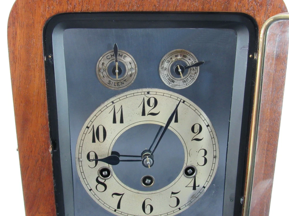 Art Deco 1920's German Junghans Wurttemberg Westminster Chimes Mantel Clock Art Deco 1920's German Junghans Wurttemberg Westminster Chimes Mantel Clock You are bidding on aa unique three-dial vintage clock Details: Manufacturer: Junghans Country of Origin: Wurttemberg, Germany Era: Art Deco (1920's) Model Number: B20 Movement: 8-Day Key-wound with pendulum, Chimes hours, and Quarter hours with Westminster chimes Features: Wood chassis, Beveled glass door with side locking button. Dials for fast and slow and off/on chimes Measurements: 14" x 10-1/2" x 7-1/2" Condition: Clock works as it should, keeps good time, plays Westminster chimes and chimes the hours and quarter hours Chassis is in good condition, . The face has some slight marks from age and use. IMPORTANT: We have a wide base of repeat and satisfied customers. However, if there is a problem with the sale, please contact us before filing a complaint with eBay. We welcome local pickup, but require cash payment as ebay requires tracking information for all items paid through PayPal. GENERAL INFORMATION Based on applicable tax laws, eBay will calculate, collect, and remit sales tax on behalf of sellers for items shipped to customers. We only ship via USPS Priority Mail and USPS Parcel Select Ground. If you have any questions, please email us before contacting eBay. We try to be honest and inspect every item thoroughly and describe it, faults and all, but sometimes some things get by us. We have had a wonderful eBay experience with excellent feedback due to the cooperative attitudes of fellow eBay buyers. In the case of a return, buyer must pay return shipping. INTERNATIONAL BIDDERS, PLEASE NOTE Due to various country laws and carrier restrictions governing the export and shipping of many items, I regret that I am unable to offer this item to all eBay buyers located outside of the US. If you are interested in bidding, message me through eBay; and based on your location, I will consider adding you to my exemption list. Import duties, taxes, and charges are not included in the item price or shipping cost. These charges are the buyer's responsibility. Contact your custom's office for the amount of these fees before bidding. All international packages are sent via USPS Priority Mail Insured. See our other auctions for more great stuff. © ® Listing and template services provided by inkFrog
