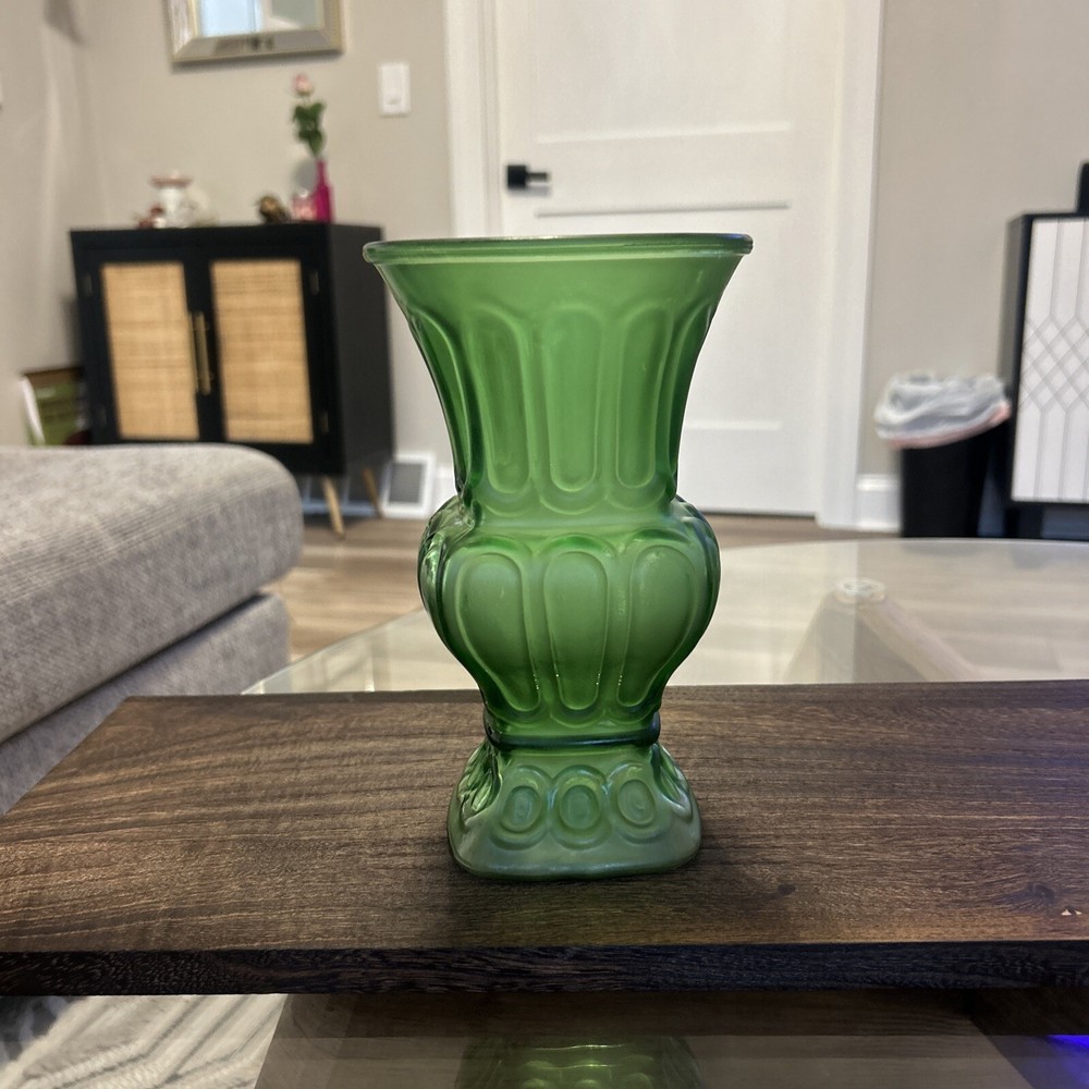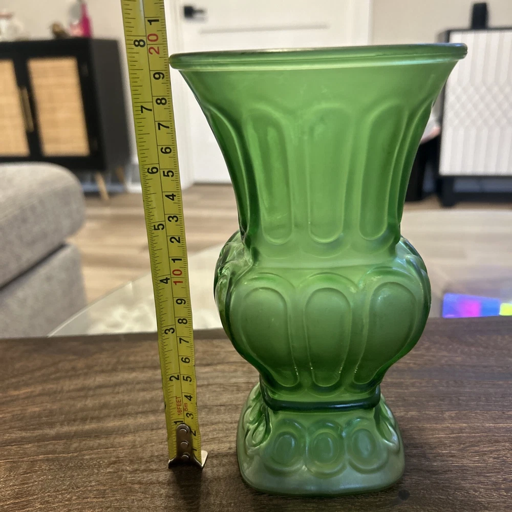 Crafted by the esteemed A.L. Randall Co., this emerald green floral vase is a testament to the timeless elegance of mid-20th-century design. With its artful etching and glossy finish, this hand-blown glass piece, produced in the 1950s, exemplifies the skill and style of American Art Deco glassware. The vase stands at 8 inches tall, weighs 1 lb 5.8 oz, and features a delicate floral pattern that wraps around the exterior, adding a touch of nature's beauty to its craftsmanship. Originating from Italy, this original piece from the American Sweetheart product line is a true vintage gem. Its production style and technique reflect the artistic era of the 1950s, making it not only a decorative item but also a piece of history. Whether placed on a mantle or used as a vase, this A.L. Randall Co. creation is sure to be a conversation starter and a cherished addition to any collection.