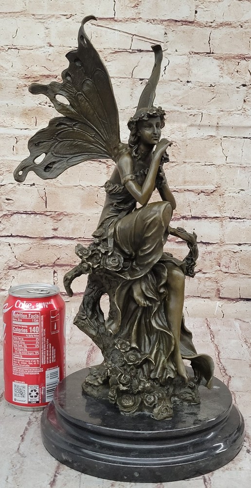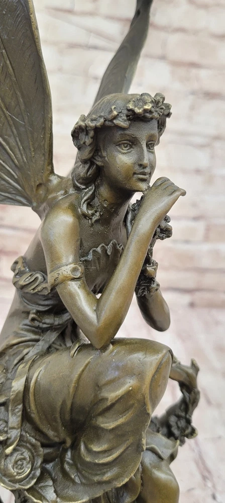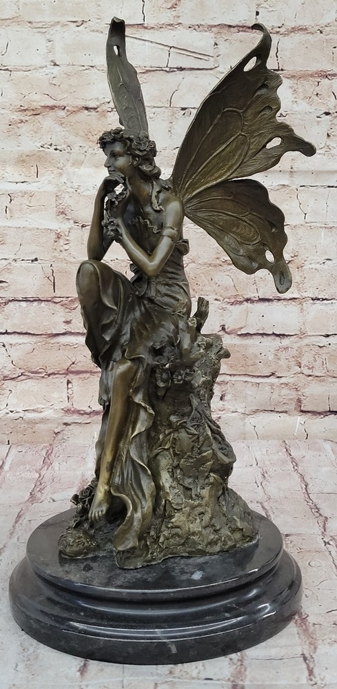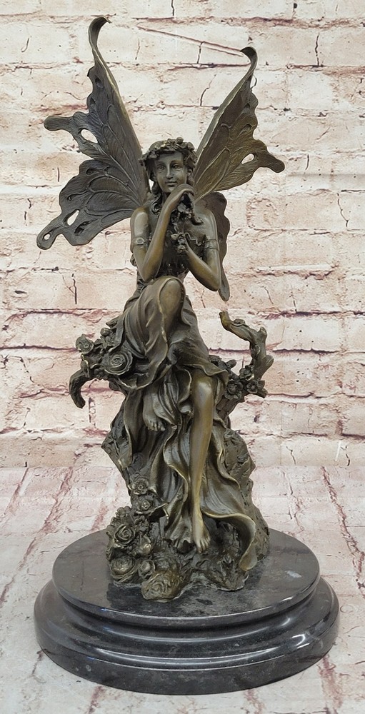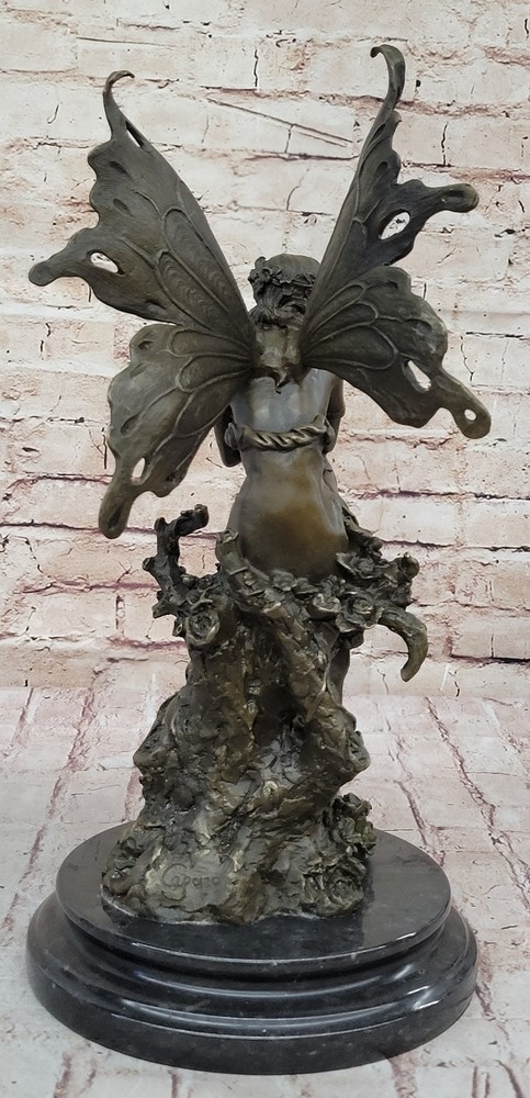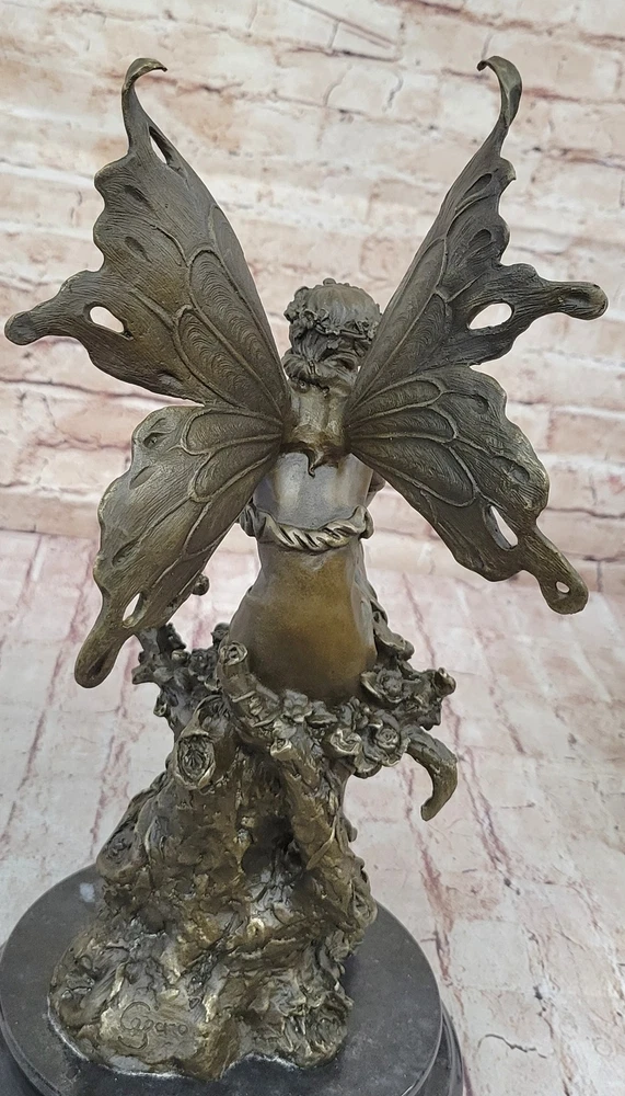 Condition : This sculpture is in perfect condition. Bronze Dimensions with Marble Base: Height 15" X Width 7.5" Marble Dimensions: Diameter 7.5" Height without base:14" Weight:14 LBS Inventory:21YDZ0828512 Embark on a journey of enchantment and celestial bravery with the mesmerizing sculpture titled "An Fairy Flies from Heaven." From the celestial realms, this ethereal being descends, a harbinger of hope and a defender against the shadows that seek to engulf our world. With a divine purpose, she dons a flowing robe and graceful sandals, her wings outstretched as if in a radiant proclamation. Her presence resonates with the very essence of salvation. Captured in intricate detail, the sculpture embodies a sense of mystical vigor. Crafted through the revered "lost wax method," the sculpture boasts a captivating brown patina that captures the play of light and shadow, further emphasizing the celestial nature of the fairy's mission. Poised atop a black marble base, her form stands as a testament to the delicate balance between realms, and the intricate nuances of her features unveil the artist's devotion to his craft. Artist Cesaro's signature graces the sculpture, affirming its authenticity and the mastery that has gone into its creation. With wings extended and a message of hope carried in her aura, "A Fairy Flies from Heaven" is not merely a sculpture; it's a bridge between worlds, a symbol of unwavering light in the face of darkness. Let this masterpiece grace your space, inspiring a sense of wonder and courage that knows no bounds. Signed Original Sexy Fairy with Wing Bronze Art Nouveau Sculpture Figurine Decor Video will open in a new window Using the eBay App? Paste link into a browser window: [isdntekvideo]