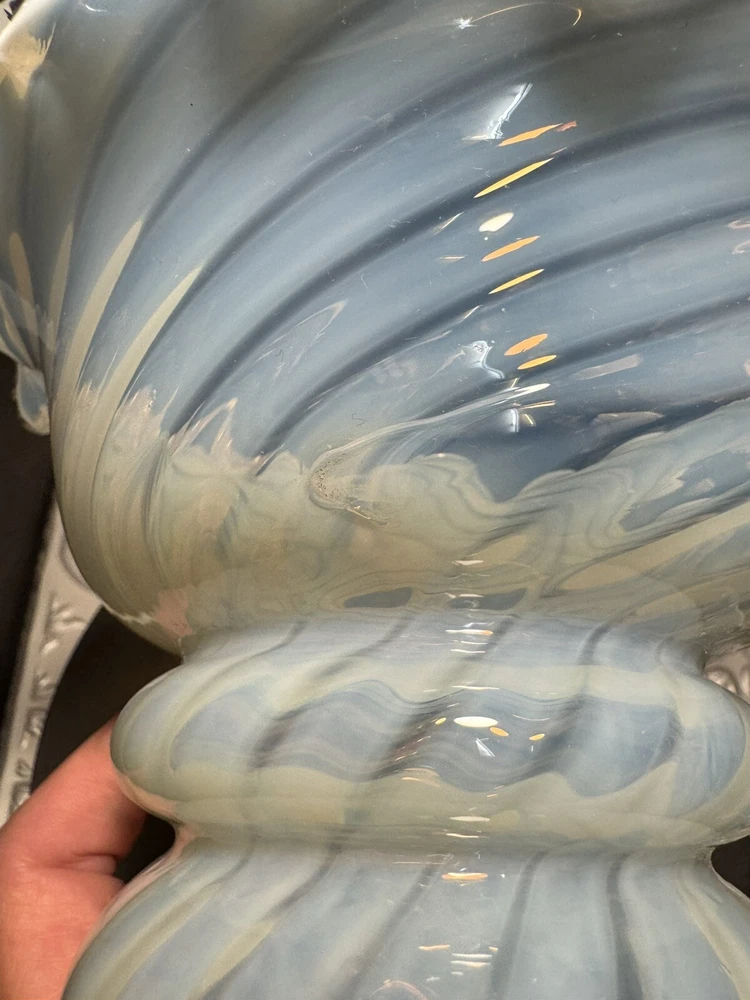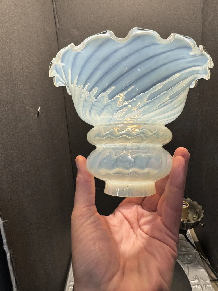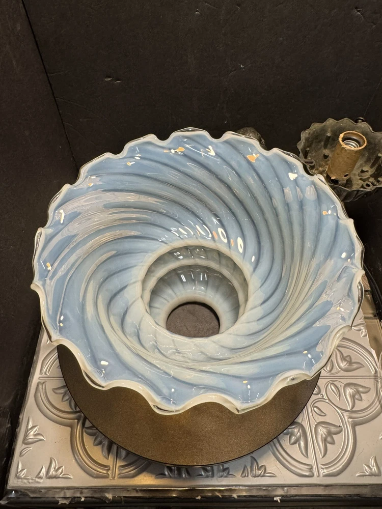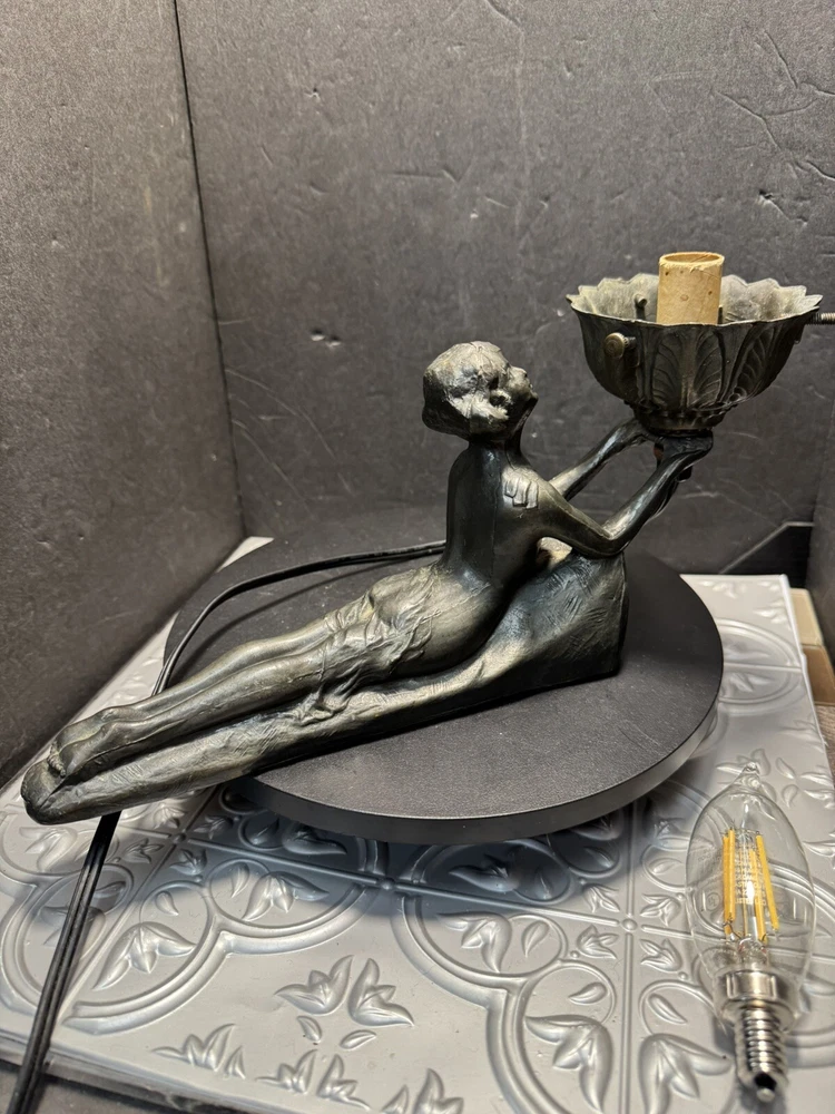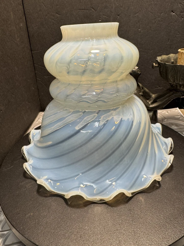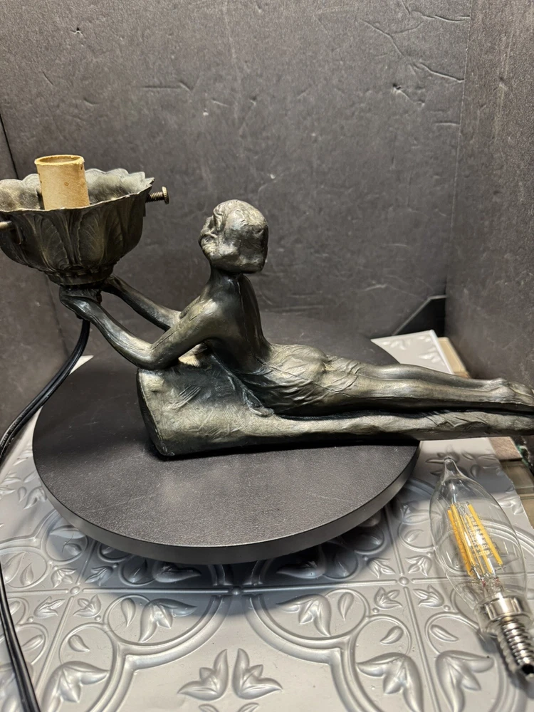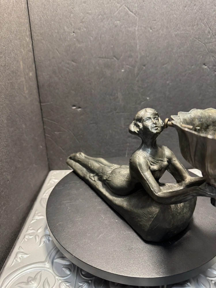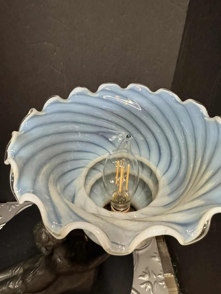 This stunning Art Deco lamp is a true collector's gem! The elegant bronze and glass lady figure with its opalescent swirl design adds a touch of vintage glam to any space. The Chandler signature and Fenton shade make it a rare find, perfect for lovers of 1960s style. The soft white and gray tones create a warm, nostalgic glow—absolutely worth adding to your collection!