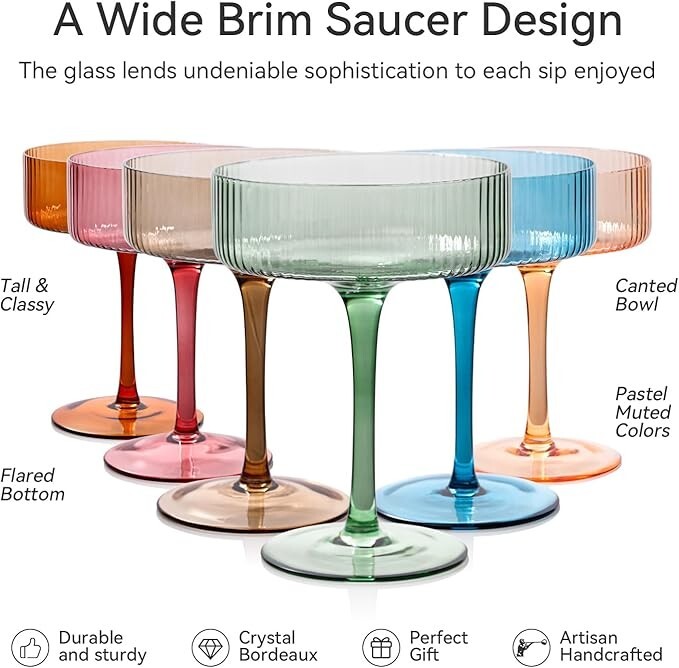 Tracking Number is provided for all listings! -- All items will be shipped out within 0-1 days after purchase! Feel free to ask us any questions you may have for our listings! -- 【Set of 6 vintage coupe glasses】Our Vintage Art Deco Coupe Glasses, a set of six beautifully crafted colored ribbed coupe glasses.The glasses, boasting a unique ripple ribbed design, add a touch of elegance and fun to any bar or entertainment space Ribbed 9 oz, Amber