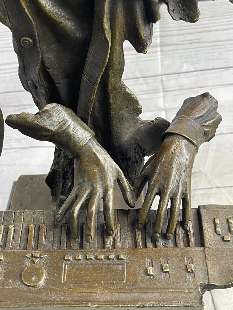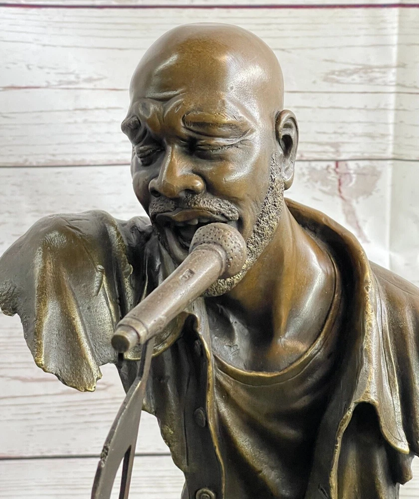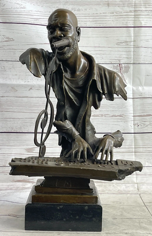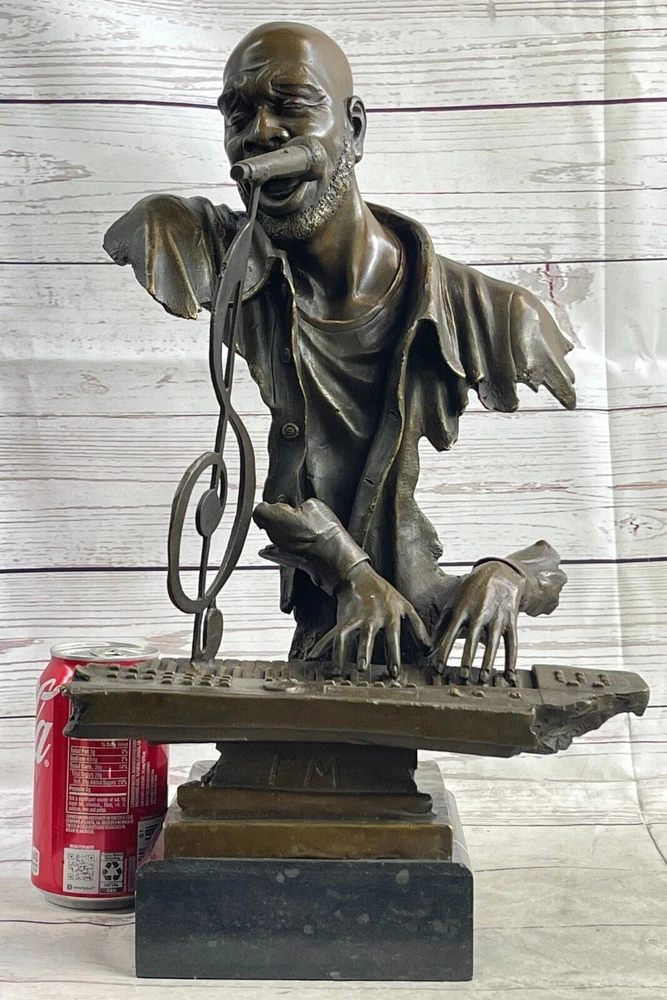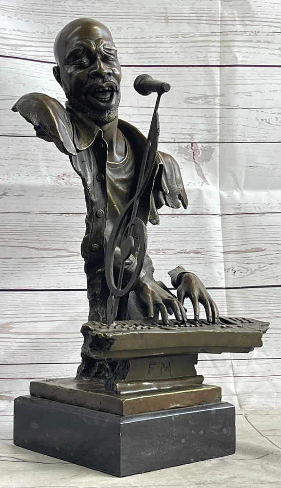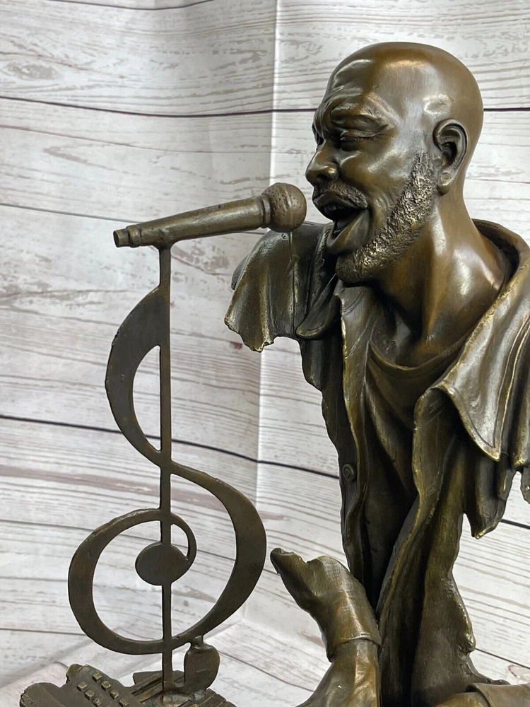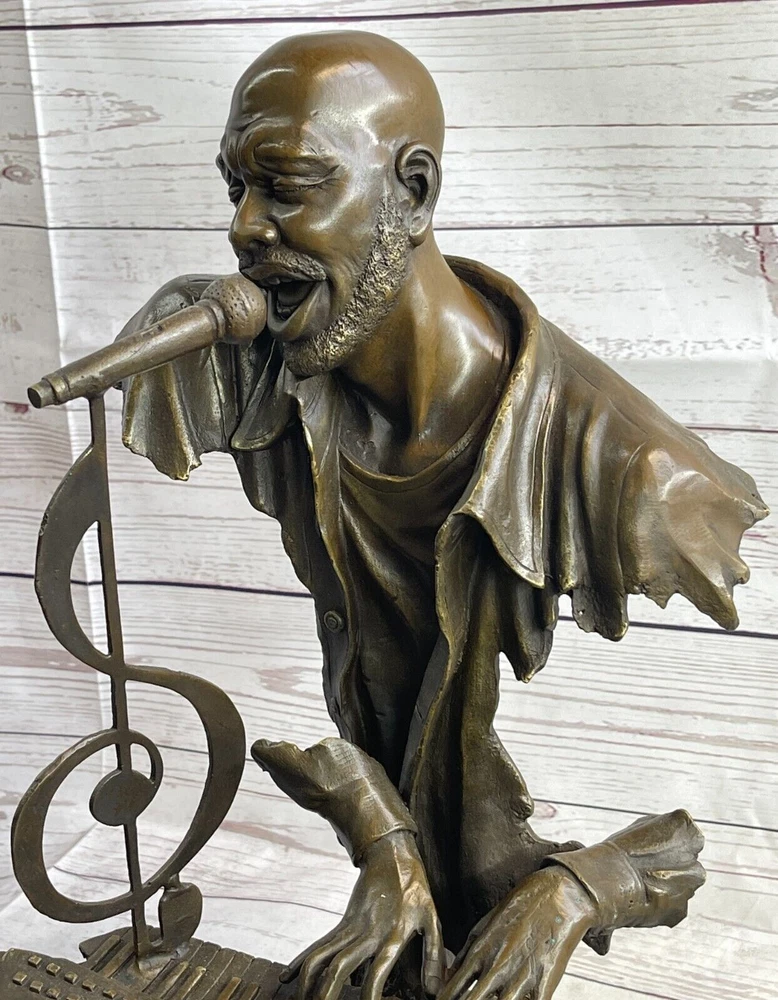 Art Deco Vintage Theater Jazz Singer Bronze Marble Statue Artwork Sculpture Sale Art Deco Vintage Theater Jazz Singer Bronze Marble Statue Artwork Sculpture Sale Condition : This sculpture is in perfect condition. Bronze Dimensions with Marble Base: Height 17" X Width 11" Marble Dimensions:5" X 7" Height without base:15 " Weight:23 LBS Inventory:74Y49012147 Presenting a remarkable bronze sculpture that pays homage to the late Isaac Hayes, an acclaimed singer, songwriter, and voice actor. This innovative piece captures the essence of his musical talent and soulful performances. Hayes is depicted with his eyes closed, passionately singing a melodious tune. The sculpture takes on an abstract form, with invisible arms, and instead focuses on key elements that represent his musicality. A detached pair of hands gracefully dance on a piano, symbolizing Hayes' expertise as a pianist. The piano itself features a prominent treble clef, emphasizing the significance of music in his life. A microphone emerges from the top of the treble clef, embodying his powerful voice and stage presence. The intricate details and artistic interpretation create a captivating sculpture that celebrates the artistry and legacy of Isaac Hayes. Crafted using the time-honored lost-wax method, this bronze sculpture showcases exceptional craftsmanship and attention to detail. The sculpture stands elegantly on a black marble base, providing a stable and distinguished foundation. Signed by the talented artist Dwight, this piece is a testament to his creative vision and skill. Ideal for fans of Isaac Hayes, music enthusiasts, or collectors of bronze artwork, this sculpture serves as a cherished tribute to a legendary artist. It adds a touch of artistic brilliance and musical inspiration to any space, inviting viewers to immerse themselves in the soulful melodies and timeless legacy of Isaac Hayes. Museum Quality Bronze Sculpture Isaac Hayes Singer Songwriter Original Figurine www.bronzhaus.com Video will open in a new window Using the eBay App? Paste link into a browser window: [isdntekvideo] Shipping Terms : Most of our items are shipped via USPS (United States Postal Service) mail or UPS. Most orders are shipped within 24-48 hours of purchase. Please be aware that not all items are available for USPS shipping due to size and weight. We do ship to Hawaii, Alaska, Canada, Puerto Rico, APO/AE, and U.S. Virgin Islands, however, an additional charge may be required. Please contact us before making any purchases in these areas. For Non-USA customers, you may be responsible for all duty, tax, brokerage fees that may be due upon delivery (shipping costs cover freight charges only). We also ship internationally. Please refer to the "Shipping and Handling" chart for the rates for each area. Payment : We accept just about any form of payment. PayPal, Master Card, Visa or American Express credit cards. Money orders, cashiers checks, and even personal or business checks. For governmental institutions, we will also accept a purchase order. Please understand that for personal or business checks we have to wait for the check to clear (usually 7 days) before shipping. Condition : New Detailed Hand Crafted Hot Cast Bronze Satisfaction Guaranteed. This is Stock Photo, Slight Color Variation!! Listing and template services provided by inkFrog