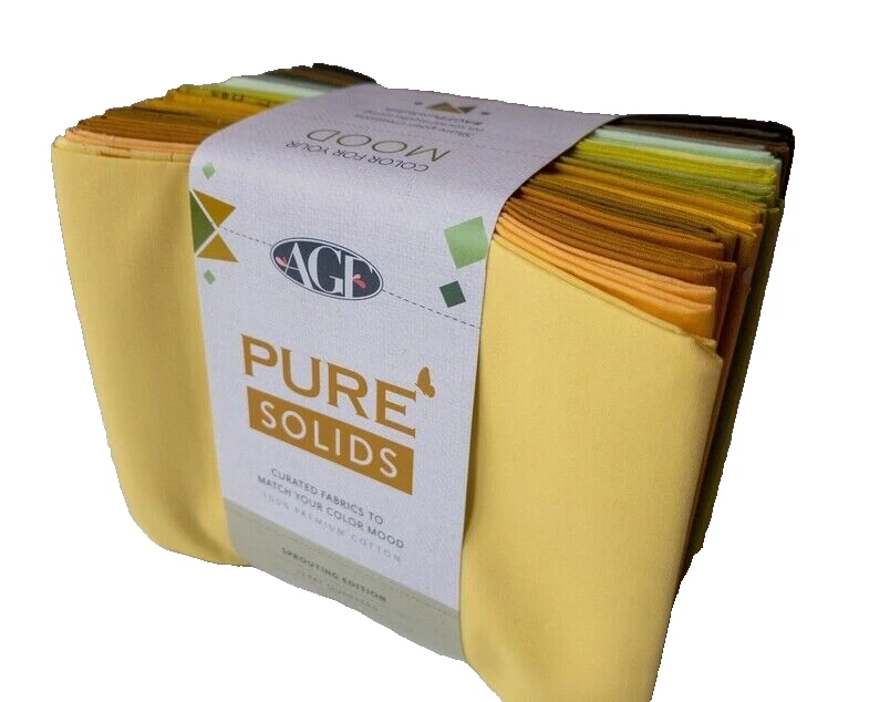 Art Gallery Fabrics AGF Pure Cotton Solids HALF YARD BUNDLE Sprouting 22 pcs - 11 YARDS TOTAL Each piece measures approximately 18"x44". Perfect condition, this is a brand new sealed bundle but I will need to open it up to properly fit it into a priority padded envelope to give you the best shipping price. Highest quality solid cotton you can buy. This Art Gallery Fabrics bundle is perfect for all your quilting needs. The bundle includes 22 pieces of pure cotton solids in beautiful spring garden colors, all in half yards. The fabric is suitable for a variety of crafts and quilting. The brand is known for its high-quality products and this bundle is no exception. Whether you're a seasoned quilter or just starting out, this bundle is a great addition to your collection. I'M HAPPY TO COMBINE SHIPPING FOR MULTIPLE WINS. SPROUTING Edition includes: PE-446 Honeydew, PE-435 Banana Cream, PE-421 Honey, PE-459 Turmeric, PE-483 Aurus, PE-484 Lemon Tart, PE-448 Canary, PE-407 Empire Yellow, PE-515 Olive Oil, PE-414 Dark Citron, PE-423 Appletini, PE-416 Lemonade, PE-409 Light Citron, PE-462 Pistachio Crème, PE-443 Sweet Mint, PE-50 Fresh Sage, PE-447 Patina Green, PE-503 Eucalyptus, PE-516 Garden Fern, PE-504 Golden Bronze, PE-468 Dried Moss, and PE-482 Forest Night Manufacturer: Art Gallery Designer: AGF Studio Collection: Pure Solids SKU: CB-PHY501 Precut Type: Half Yard Bundle - 18" x 44" Cuts