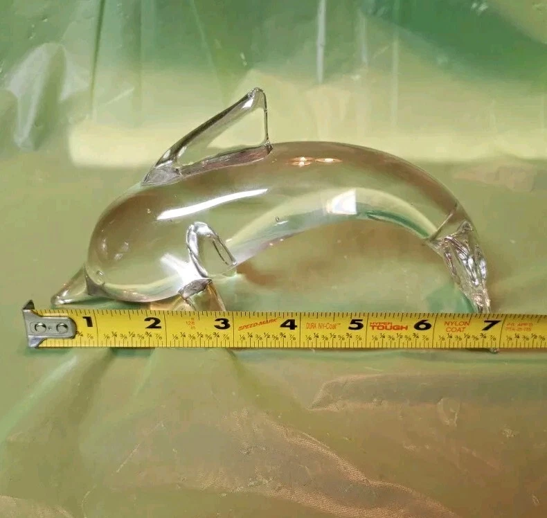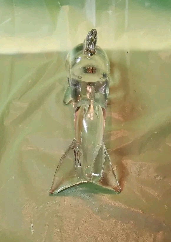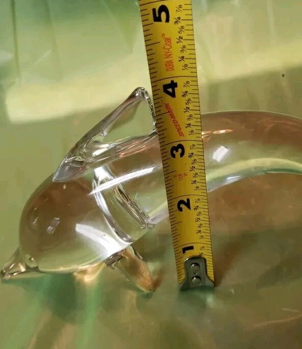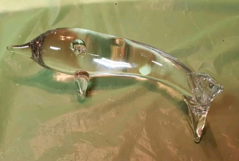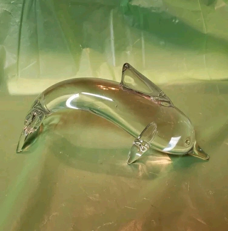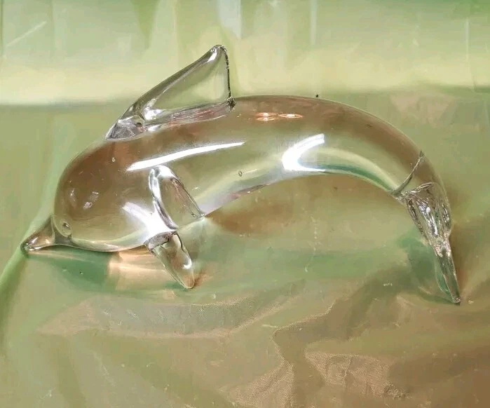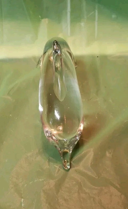 Clear glass dolphin paperweight. Excellent condition. No damage, chips, cracks or dings.
