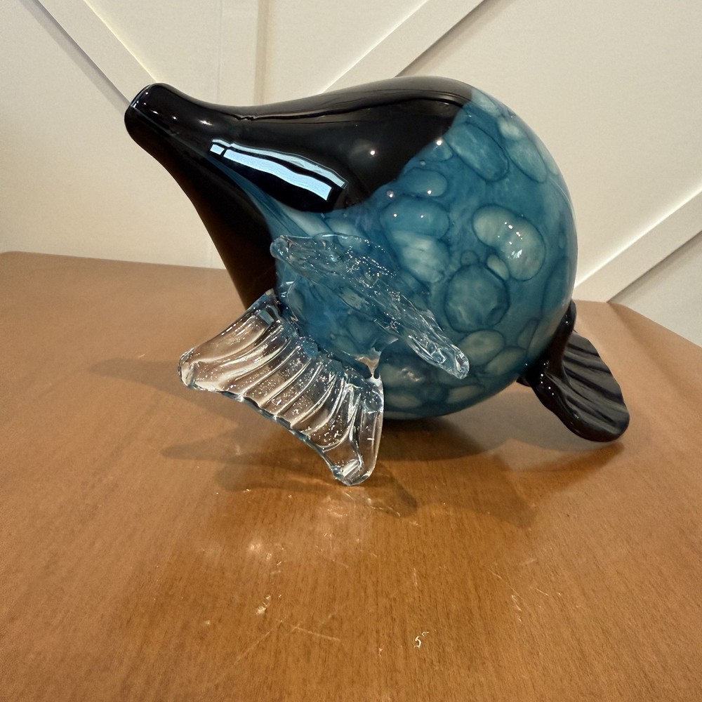 Hand Blown Large Glass Puffer Fish Murano Style Home Decor Excellent used condition Fast and secure shipping