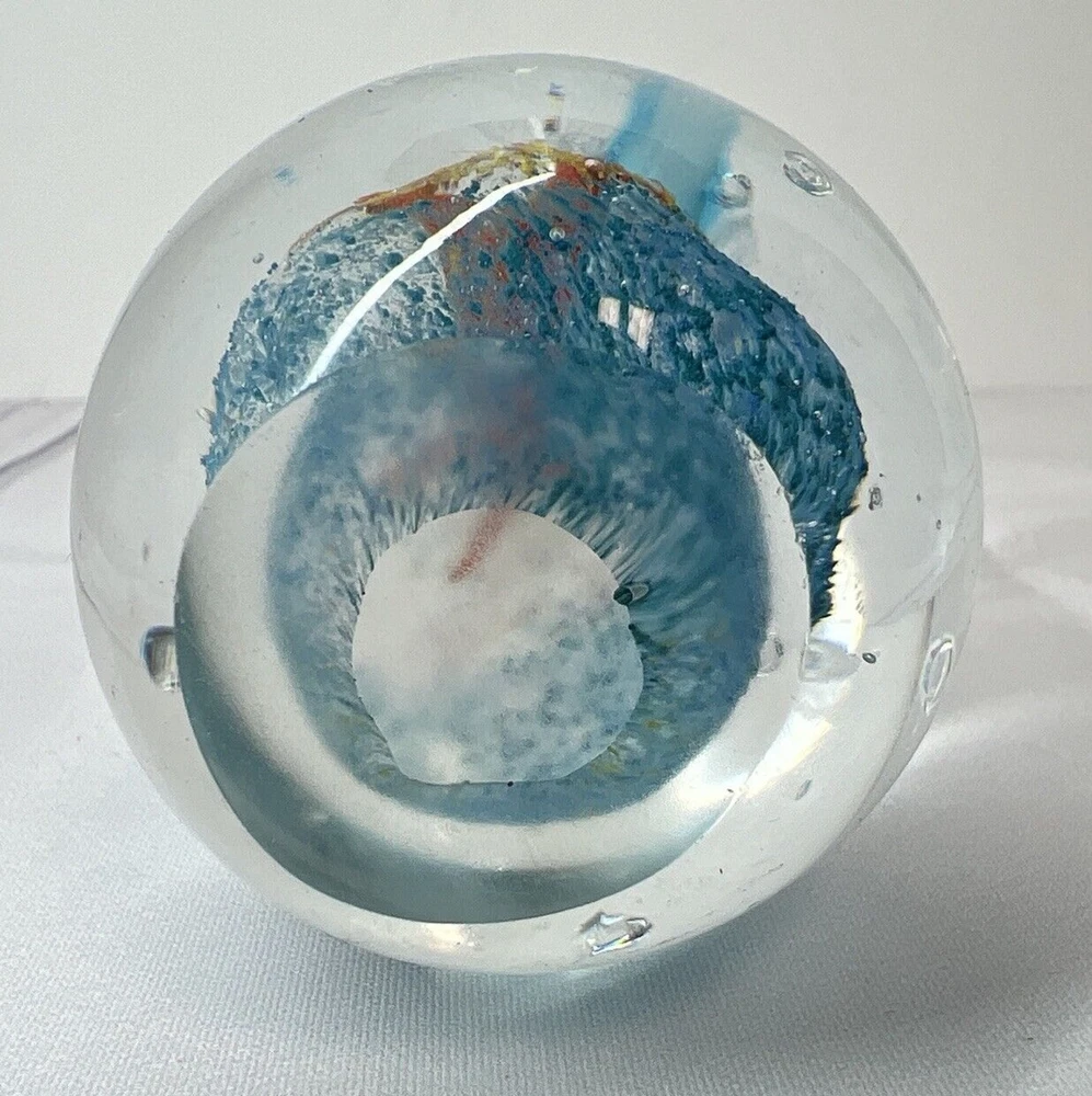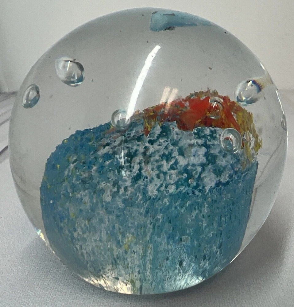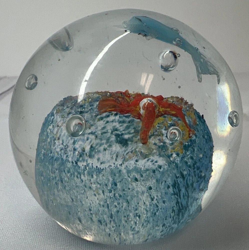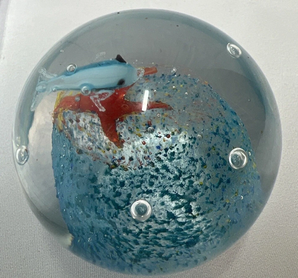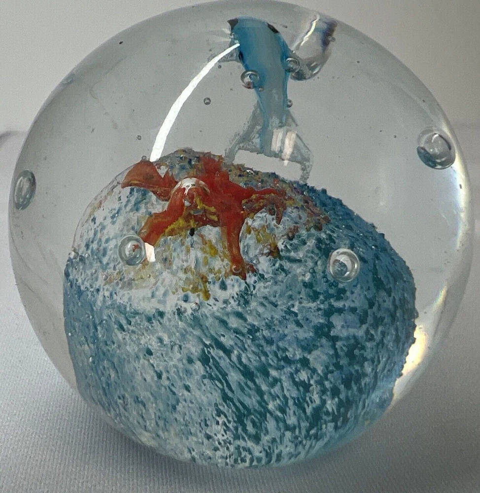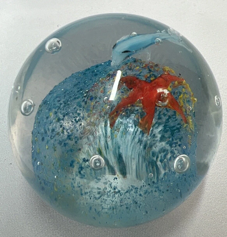 Art Glass Paperweight Dolphin And Starfish With bullicante Smooth Bottom hand blown