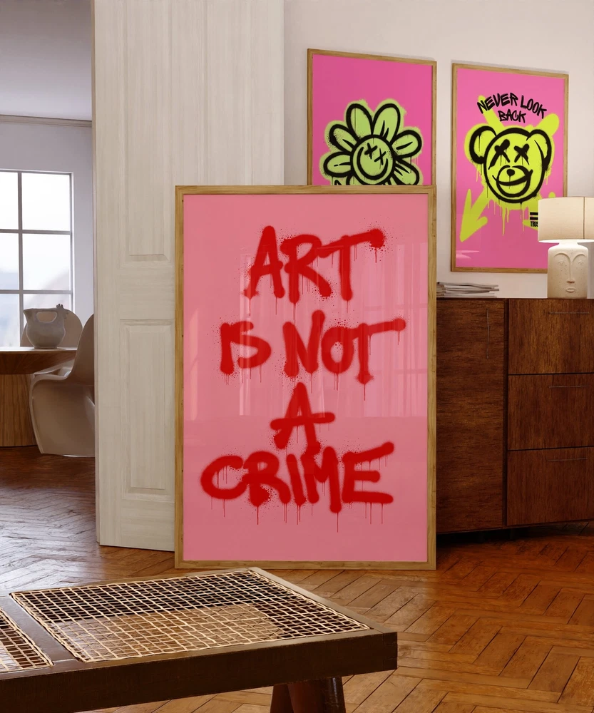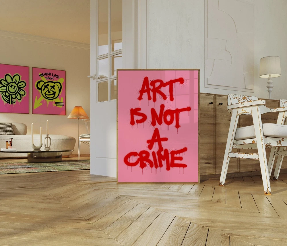 Art Is Not A Crime Poster Graffiti Art Print Pop Art Print Trendy Wall Art Material: Premium luster photo paper Print type: Inkjet printing One side printed + The finish provides the highest possible resolution and color saturation + Lasts up to 200 years in color and 400 years in black-and-white + Printed on high-quality resin-coated photo base paper medium + Posters can be hung with double-sided tape, tacks, or framed + Hand washing with a gentle cry cloth is recommended for extended durability I will hand select the best choice of paper for your chosen design to ensure top quality results for a beautiful, bright and luxurious print. All prints are sealed in cellophane slips for protection during transportation, and are shipped in a protective cardboard envelope.