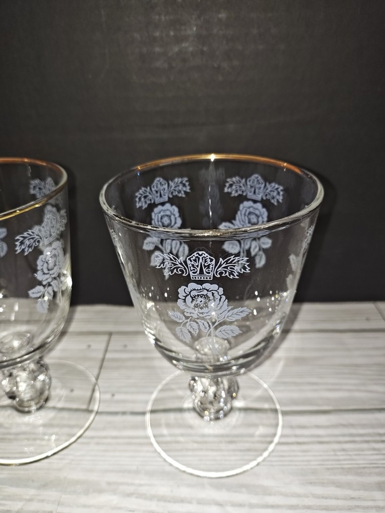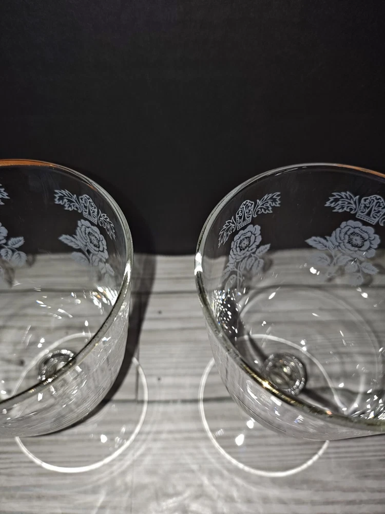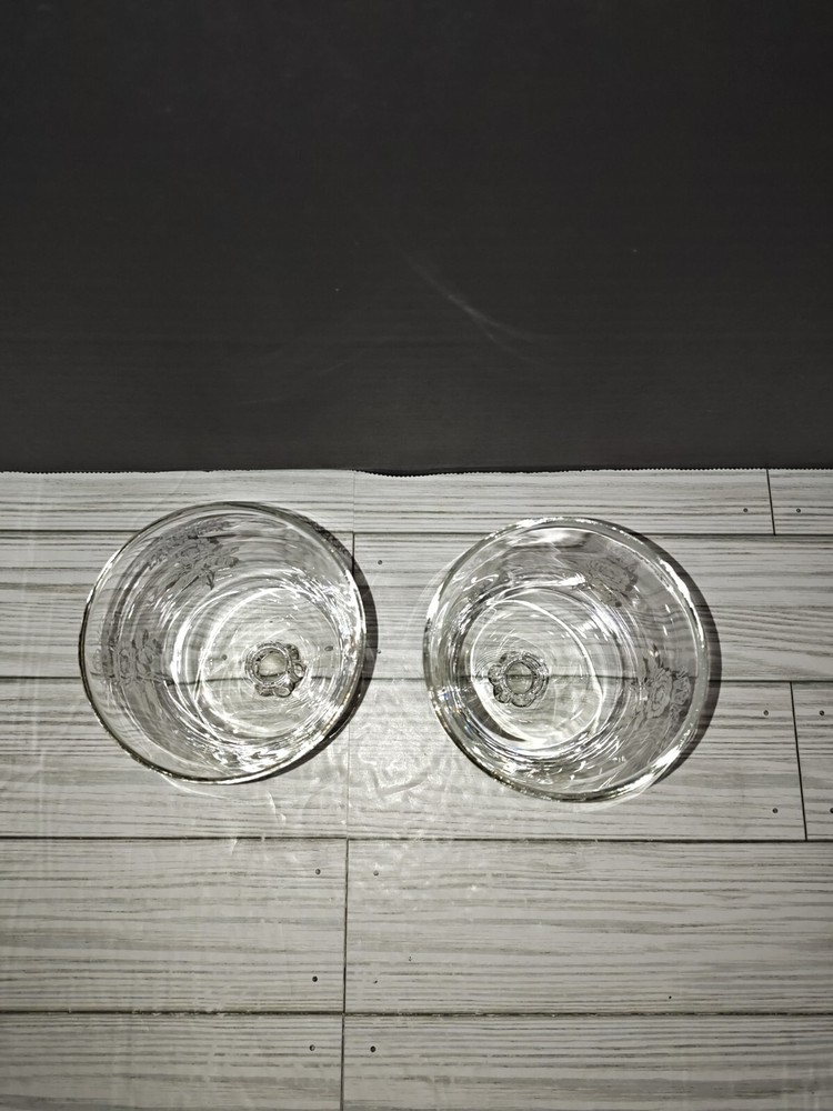 Art Nouveau Floral Design Glass Champagne Wine Coupe Goblets Set of 2. They have wear from age use and storage. See pictures. Sold as is.