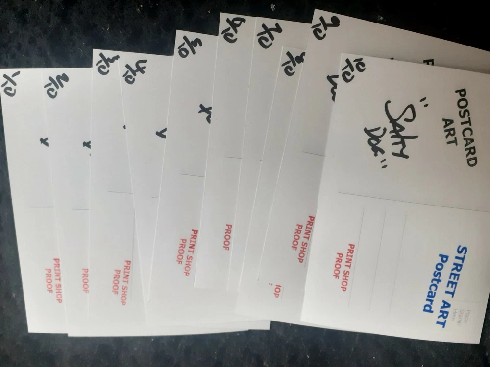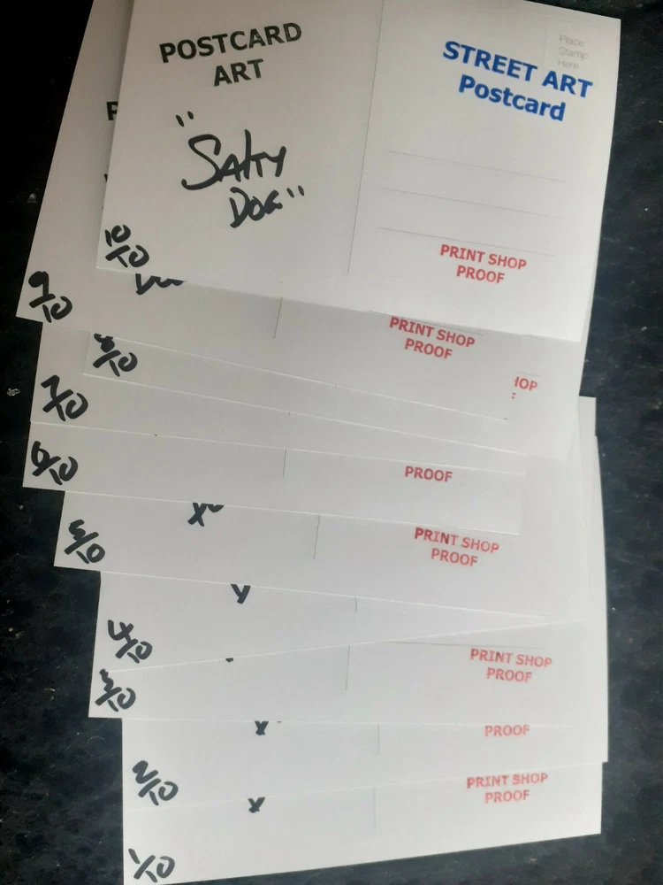 Art Postcard Street Art Ltd Edition Print Shop Proof. Dispatched with Royal Mail see pictures the pictures form part of the description thank you free shipping in uk thank you very limited edition of just 10 .... ex print house proff... art post card ... ART POSTCARD....... art for arts sake .... Postcard art.... art Postcard