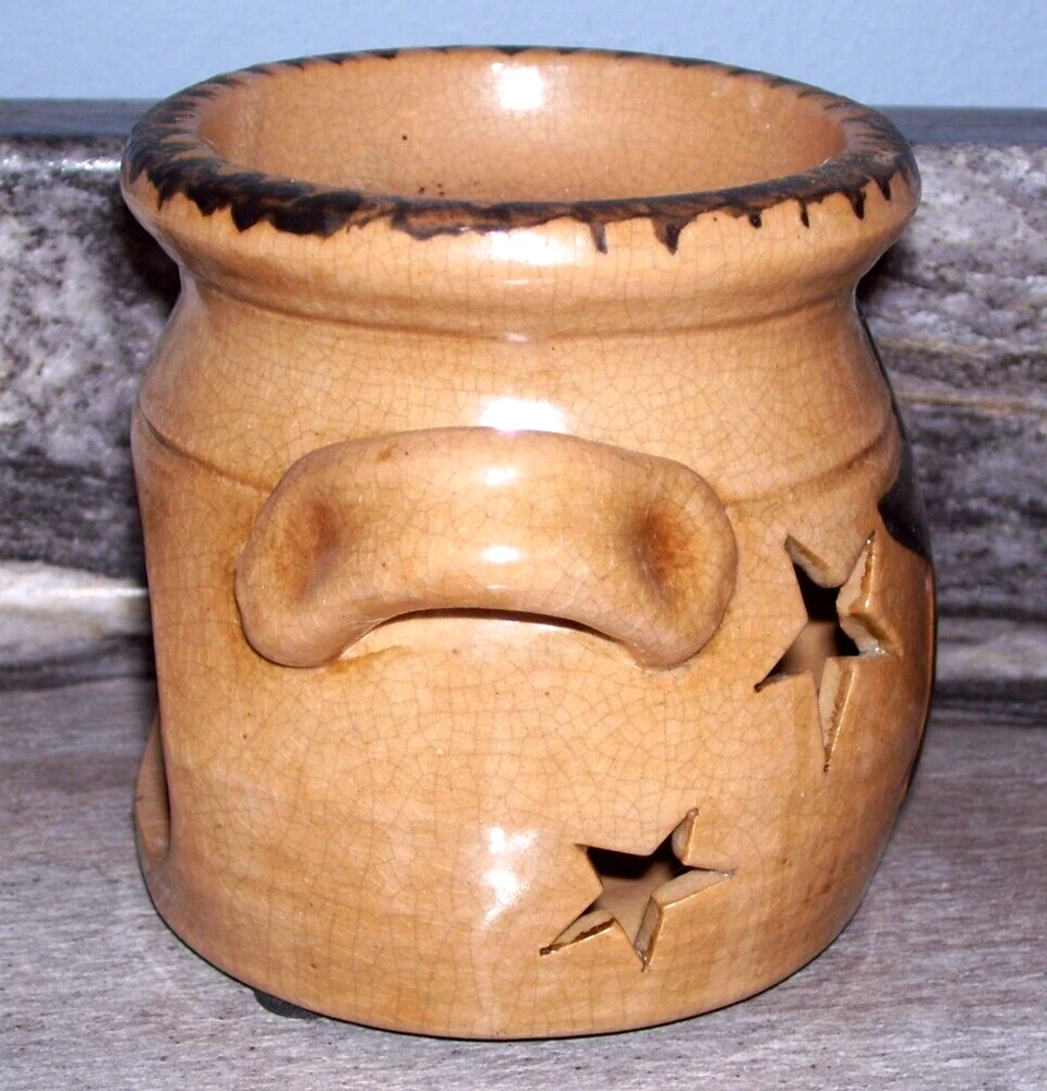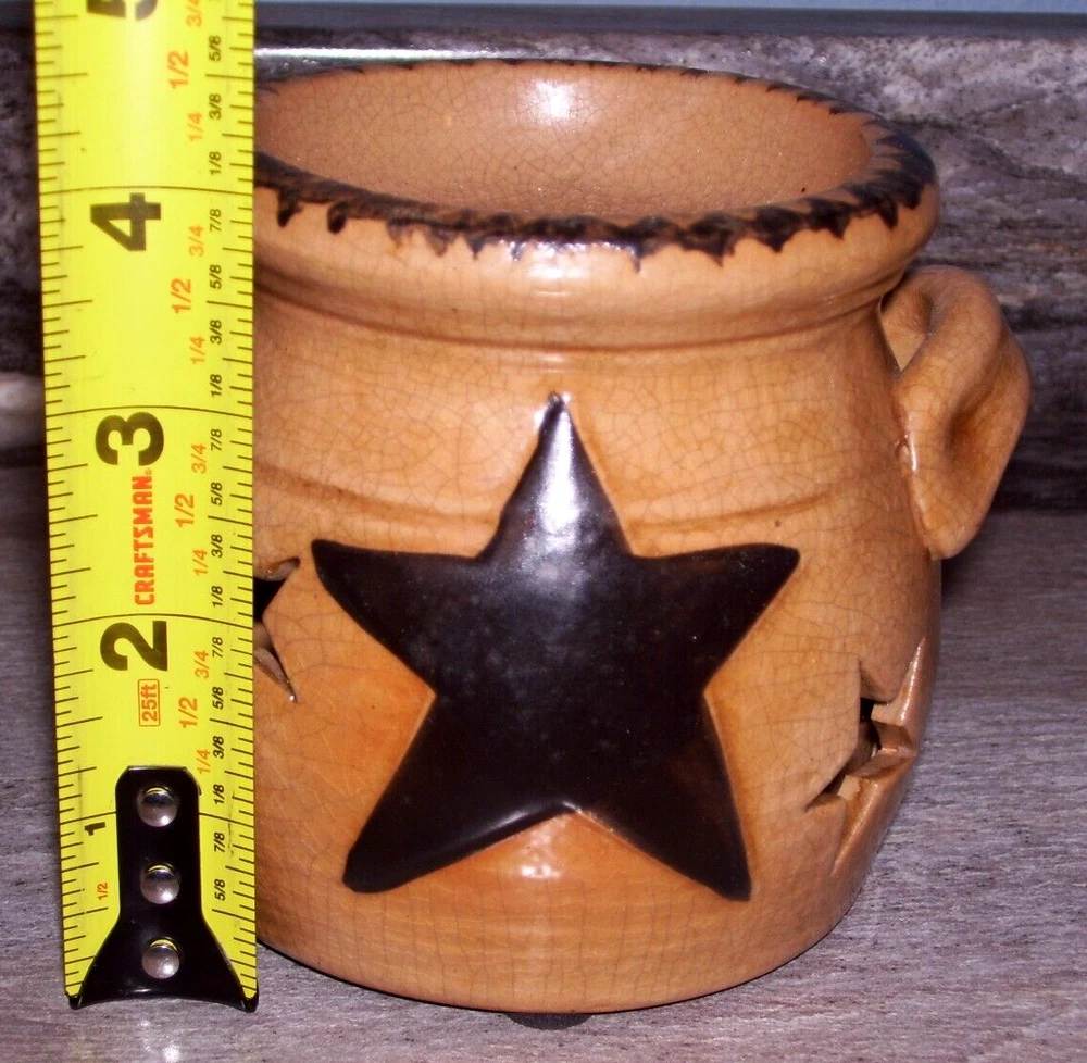 This is an art pottery tealight wax warmer with a star design. It ahs been used but is in very good condition. It measures 4 inches tall. Thanks for looking.