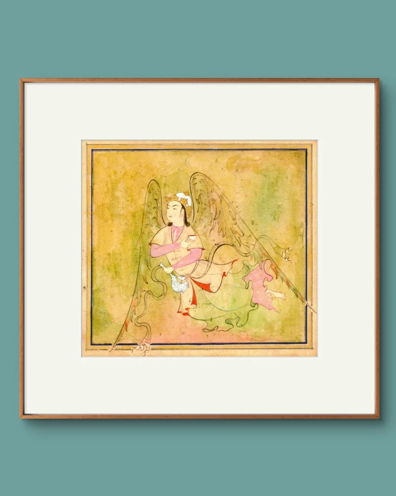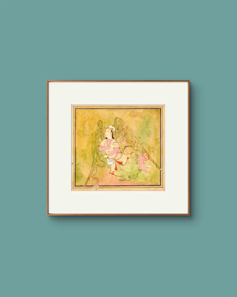 This Persian Miniature art print is a small-sized contemporary piece featuring a traditional Persian painting style. Printed on matte paper, it showcases intricate details typical of Persian miniatures. The print, with a portrait orientation, measures 5.3 inches in length and 4.8 inches in height, making it ideal for wall decor. Produced in 2024 in the United States, this unframed artwork captures the essence of Persian culture and art in a modern style, perfect for art enthusiasts looking to add a touch of sophistication to their living space.