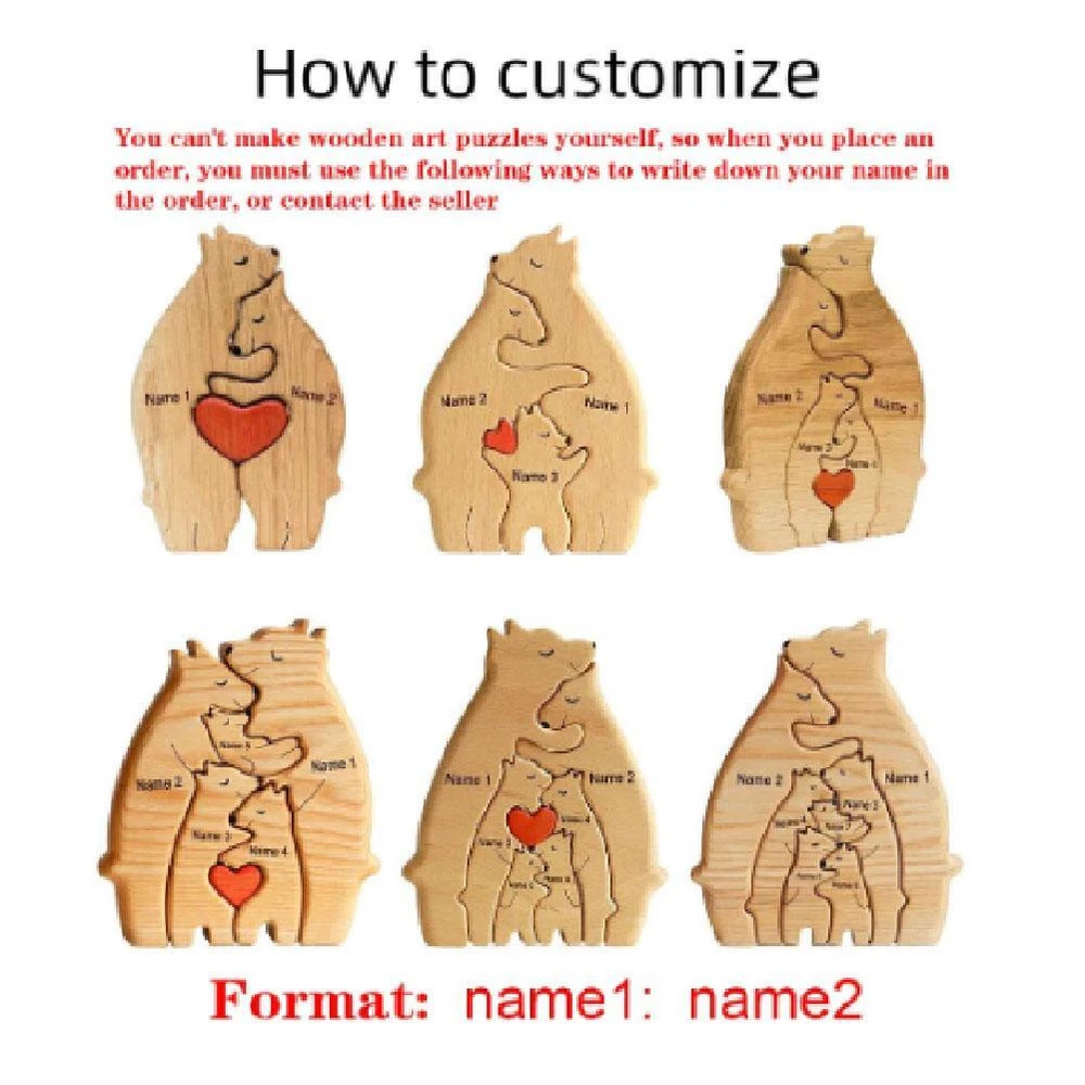 Description Description&Preview shipping&policy Description: Name: Customized Wooden Puzzle Ornament Material: wood Customized content: provide name Description CUSTOMIZE NAMES: Customize this wooden bear puzzle with 2-7 last names in your choice of six styles. Make a unique gift for your family. Bears cuddle together to show family love and unity! PERFECT CARVING: The customized name on the wooden bear is perfectly carved, the name is clearly visible and will not fade. Just like the love between families, it will never fade away HIGH QUALITY WOODEN MATERIAL: This wooden bear puzzle is made of pine wood, which is safe and harmless, not easy to deform and fade, the wood grain is clearly visible, with a light pine scent. Represent family bonding with this cute bear cubs DECORATE YOUR HOME: Place the wooden bear puzzles engraved with your family's names on your desk and bookshelf, and any space in your home as housewarming decorations. Engrave the last name on the first piece of each bear, making it a treasured keepsake and unique home decoration that expresses love for family members WOODEN/FAMILY GIFT: Choose wooden bear puzzle as a Father's Day, Mother's Day, Christmas or birthday gift for your family members, it has a remarkable memorial significance and represents a family full of love and warmth Product List Customized wooden puzzle ornament*1 Preview: Thank you for your purchase Problems? You can follow below process to contact us. There is a time zone difference,but we will do our best to quickly response to your questions: Shipping ● We will arrange shipping for you within 24 Hours after payment cleared except the holidays. ● We always send the item to the address you give us on Payoneer to ensure the security of the item. If you have changed your address, or want us to ship to another address, please change to the new address when you pay us with Payoneer, otherwise we will not be responsible if the package is lost. Payments We accepts Payoneer only If you have any questions about the payment,please contact us through eBay message. Import Duties In case some duty is due Upon delivery, it is your responsibility to meet that expense and this may cause delays to delivery schedule and you may have to pickup goods at the customs office. Terms & Conditions By bidding on this item,the Buyer agrees to all of the terms and conditions as outlined in this listing .please ensure to read and agree to All eBay terms and Conditions before bidding. All pictures are for illustration purpose only and Colours may vary slightly. Our store obeys all eBay Rules and Policies. Returns Policy To Return an item you must contact us and take photos of your item to clearly show any damage or unusual aspects of it. Approved returns will be subject to inspection on arrival. Items must be returned in original condition with all original packaging. All shipping and handing charges are non-refundable Return delivery costs are the responsibility of the buyer. We will cover the cost if sending replacement/repaired items. Within 7 days after receiving your products, we offers a no-hassle 7 day exchange/replace only if your items are found to be defective by manufacturer.