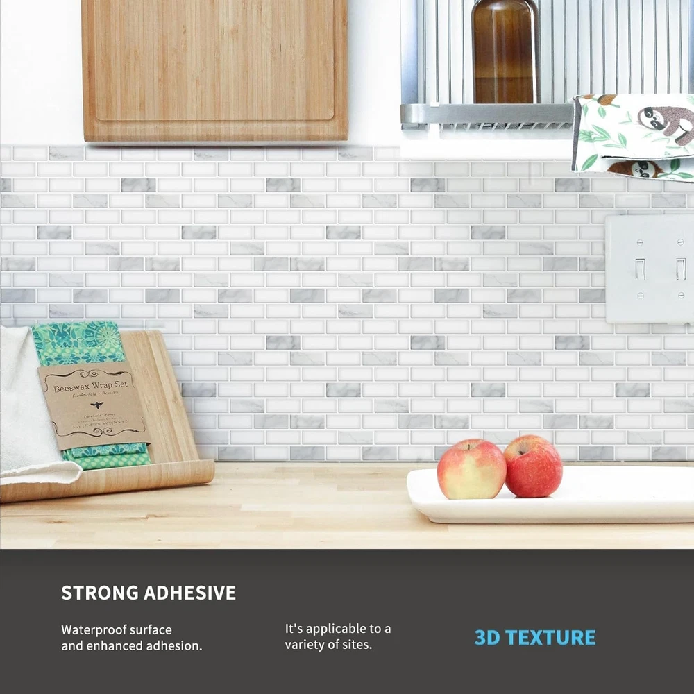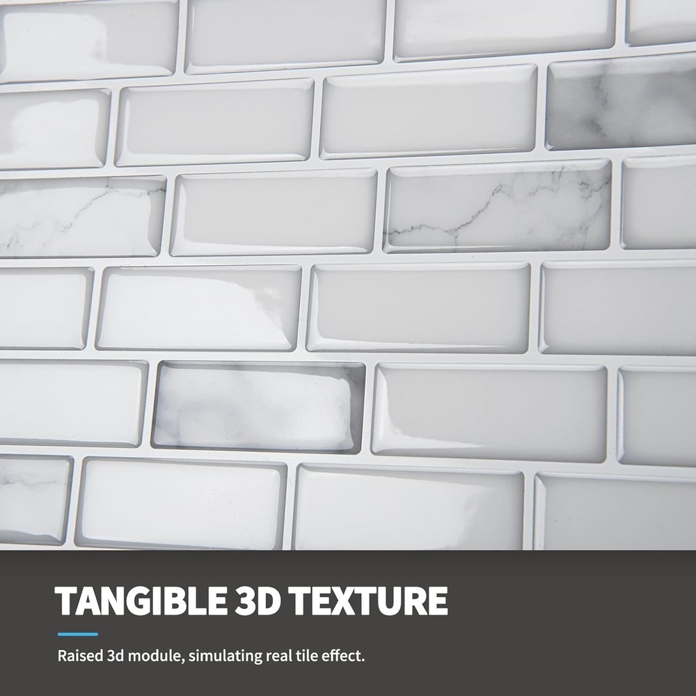 Art3d 10-Sheet Peel and Stick Backsplash Tile in White Marble, Self-Adhesive