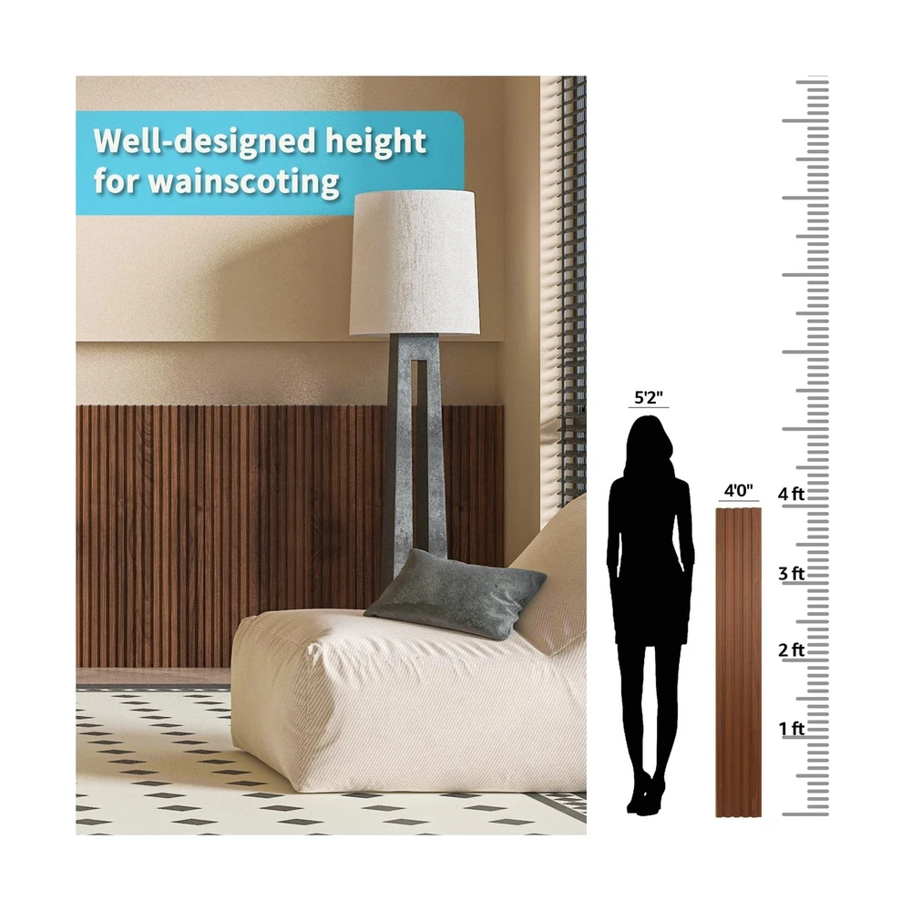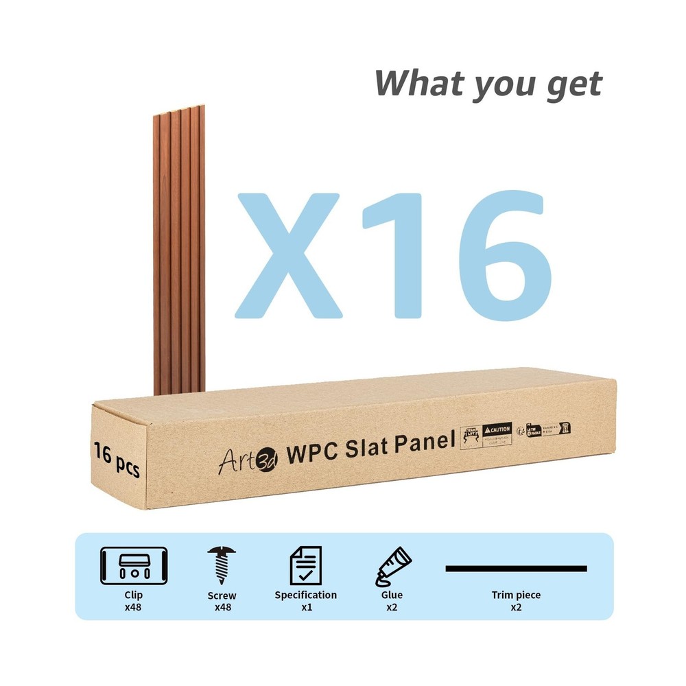 Art3d WPC Wainscoting Panels, 16-Pack 48 x 6 Inch 3D Wall Accents for Interior Wall Decor, Living Room, Bedroom, Teak Description Features: Product Details: Material: Wood-Plastic Composites Brand: Art3d Item dimensions L x W x H: 48.03 x 6.3 x 0.31 inches Color: Teak Shape: Rectangular Item Dimensions: 48.03 x 6.3 x 0.31 inches Item Thickness: 6 Inches Item Weight: 10 Kilograms Color: Teak Item Shape: Rectangular Item Form: Sheet Material: Wood-Plastic Composites Grade Rating: Commercial Brand Name: Art3d Number of Items: 16 Model Number: A30151 Part Number: A30151 Manufacturer: Art3d Specification Met: Yes Delivery We Do Not Ship Outside of the Continental US. Return Policy All items qualify for returns within 30 days of receipt. Seller is responsible for return shipping on any item that is not damaged. Feedback We take our reputation seriously, we buy and sell online, so we understand the value of trust. If you are unsatisfied with your order, please contact us and we will work with you to resolve it to your satisfaction.