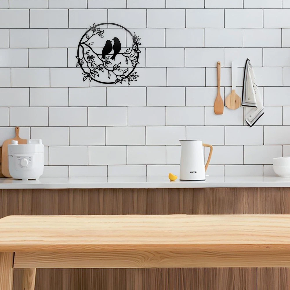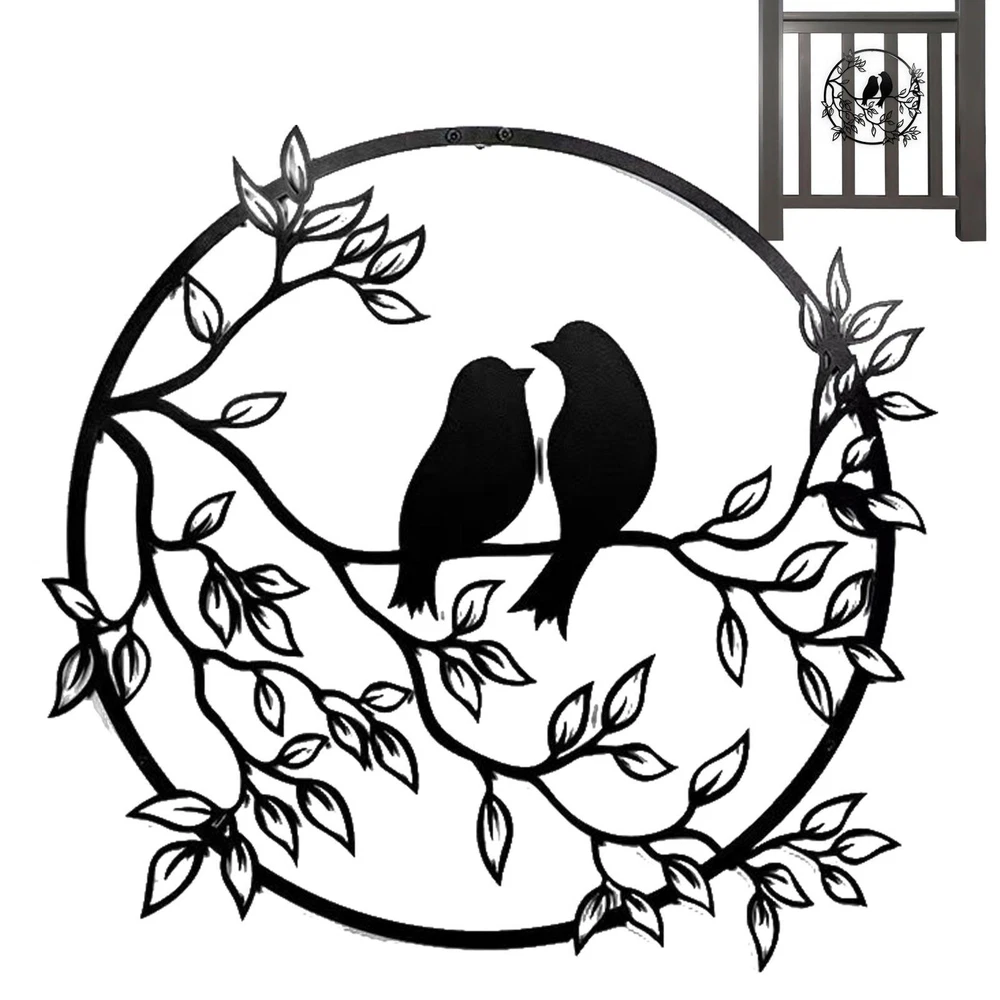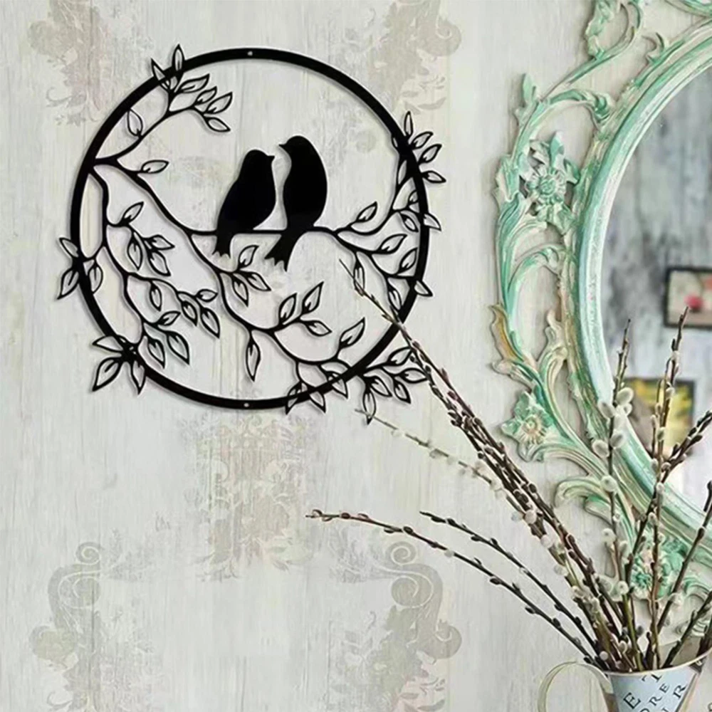 Bullet Points: [ Exceptional Workmanship ] Gives you an artistic touch and brings a fresh natural feel to your space, Metal Wall Art is designed with 2 silhouettes of birds on a branch, shaped in a round shape, the color looks simple but stylish. [ Reuse Many Times ] Not easy to break or fade, sturdy and reliable for long-term use, Metal Wall Decor is made of strong metal material, crafted using upgraded cutting technology. [ Conserve Space ] Bird Wall Art is decorate your empty wall without taking up much space, measures about 30cm/11.8in in diameter, appropriate size and layout easily grab the attention. [ Wide Application ] Bird Wall Decor is suitable for bedrooms, living rooms, kitchens, hallways, gardens, and hotels, can be hung on the wall, door, or shelf, suitable for decorating your home. [ Good for Gift Giving ] Black Metal Wall Art is a great choice for newlyweds, newlyweds, friends, and family, can decorate a home, kitchen, porch, or garage, perfect as a housewarming gift. Description: This Metal Wall Art Decor is designed with 2 bird on tree branches silhouette, in a round circle, in which the color looks simple but stylish, giving you an artistic feeling, and bringing your space a refreshing feel of nature. Specification: Material: iron Size: about 30*30cm/11.81*11.81in Packing List: 1 * Metal Birds Wall Sculpture