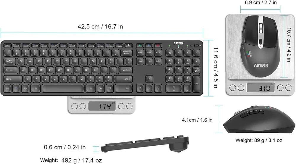 Arteck Multi-Device Full Size Bluetooth Keyboard & Mouse Combo HB305-3MB167