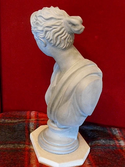 Recently, all my packages in the USA were delivered to recipients in 18-20 days thanks to the good organization of logistics. Exclusive technology unparalleled Artemis Diana sculpture statue bust Ancient Greek Classical sculpture white metal Artemis was one of the most widely venerated of the Ancient Greek deities. Her Roman equivalent is Diana. Some scholars believe that the name, and indeed the goddess herself, was originally pre-Greek. Homer refers to her as Artemis Agrotera, Potnia Theron: "Artemis of the wildland, Mistress of Animals". The Arcadians believed she was the daughter of Demeter. In the classical period of Greek mythology, Artemis was often described as the daughter of Zeus and Leto, and the twin sister of Apollo. She was the Hellenic goddess of the hunt, wild animals, wilderness, childbirth, virginity and protector of young girls, bringing and relieving disease in women; she often was depicted as a huntress carrying a bow and arrows. Condition: New, handmade in Ukraine Our studio operates using exclusive technology, which is unique. With the help of special equipment we are able to cover the surface of any non-ferrous metal products. This process occurs when the melted metal. Thus, color coated metal product, gets kind of casting. Such a surface can be patinated, metal handle brush, emery cloth and polish. Details: Alabaster, white metal, marble base. Dimensions: Height: 51cm – 20" Width: 31cm - 12.2" Diameter: 21cm - 8.4" Weight: 11kg – 24 lbs I will answer any questions about this ad There are a lot of exclusive statues, busts and sculptures on my account using author's technology. I advise you to look! Shipping cost includes shipping to the United States, Europe. For other regions of the world, the price is different. Ask the author.