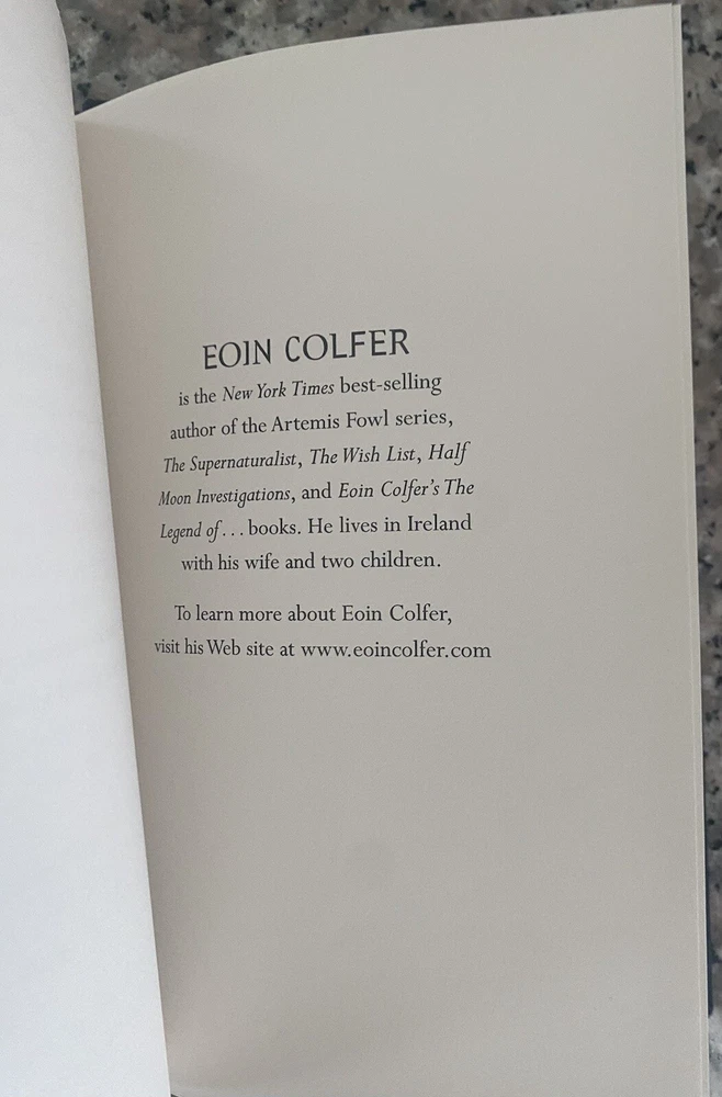 This Book is in Very Good Condition with no Rips, Tares, Writing or Damage to the cover. There is no Dust Jacket. This Book ls Signed by the Artist to a Nigel with more inscription than you see normally with a book signing. It is from a Smoke Free Home. Will Ship with Care in 1 Business after Purchase. This would make someone that likes the Author Eoin Colfer an excellent Christmas Present.