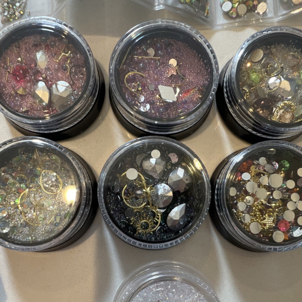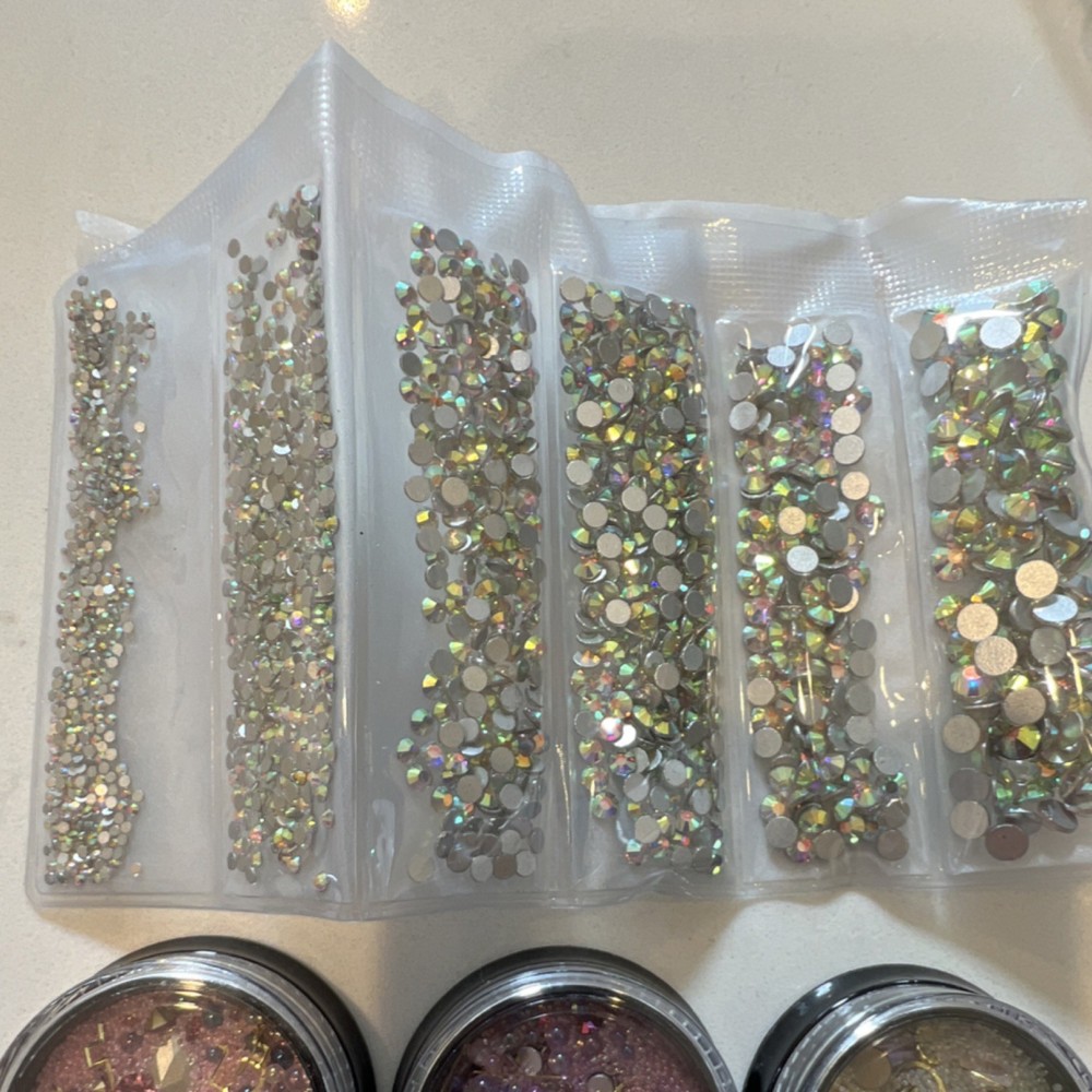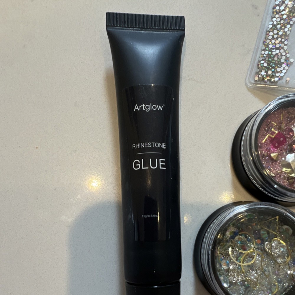 Artglow Rhinestone Nail Art Crystals Set with Glue, Assorted Colors, Round Shape
