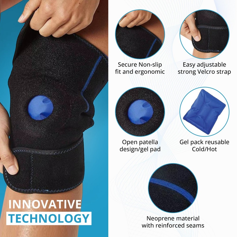 - Dual thermal function: heat and cold therapy for faster recovery, immediate pain relief. - Compression Knee Brace: Includes adjustable straps. Ideal for providing support during treatment of injuries. Aids fast and effective recovery after intense exercise, surgery, arthroscopy, meniscus tears, tennis elbow, swelling and acute muscle pain. Knee pain relief. Ergonomic design: comfortable and secure fit - Versatility for knees, elbows and calves: adaptable to various parts of the body, providing complete and versatile relief. Reduces inflammation.