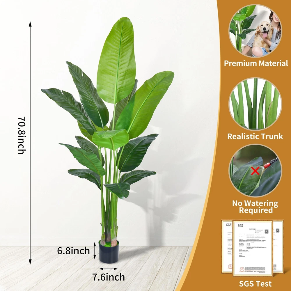 Descriptions: Material:Silk,plastic,wire Color:Green Type(Optional):BirdofParadise,ArecaPalmPlant Size(Optional):4ft(1pack),4ft(2packs),5ft(1pack),5ft(2packs),4ft&5ft(2packs),6ft(1pack) Packinglist: 1SetxArtificialTree 【No Need Styling Fake Tree】: artificial plant is easy to assemble in 2 minutes. No need styling, just insert the leaves into the holes, and you can get a sight of green immediately. Upgraded 1:1 simulation of the real plant showcases the natural growth state. Without ordinary wire holes that affect the appearance, so the tree trunk cannot be bent. Don't bend the tree trunk, as it may break easily. 【Realistic Faux Tropical Plants】: Do you want some green to light and refresh your home? This artificial tree will solve your problem! Elegant Artificial Bird of Paradise tree Adopting an integrated tree stem structure with textured root design and 3D printed realistic leaves, creating a natural plant shape that brings you closer to nature. Suitable for capturing the appearance and feeling of lovely tropical palm trees anywhere. Artificial tree is green all year round. 【5 Size Artificial Plants】: Fake plant palm trees with the size of 3feet/4feet/5feet/6feet/7feet in height for you to choose from. When the palm tree is upright and taken out of the shipping box, the distance from the bottom of the basin to the top of the leaf is 3feet/4feet/5feet/6feet/7feet. You can choose different sizes of floor plants to decorate your house. plantas artificiales decorativas is easy to create luxury style, Gothic style and Northern European style decoration. 【Why Choose Artificial Trees?】: Artificial tree faux plants indoor are always dark green and full, with leaves never falling, no watering, no sunlight, or special care, will not fade, and will maintain its appearance and keep fresh all the year. When there is much dust,just use a damp cloth or a duster to clean them. For outdoors, we recommend that avoid direct sunlight. Suitable for living room, dining room, office,or any building hall. 【Various Uses and Purposes】: fake plants palm tree is an ideal choice for Hawaiian parties, tropical party decorations and tropical islands. Strong enough to support mini lights, small bells or pendants. Jungle party supplies, palm leaf swimming pool party, wedding decor, restaurant, craft supplies,birthday party, baby shower decorations. There is nothing more natural or vivid than ornamental plants Year-round decoration. As close to reality as possible, suitable for any place.