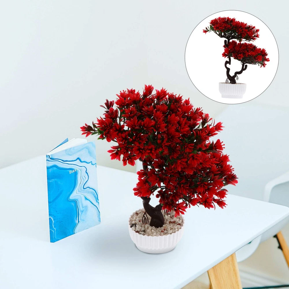 Artificial Bonsai Tree in Pot Faux Potted Pine Plants Plastic Fake House Plan...