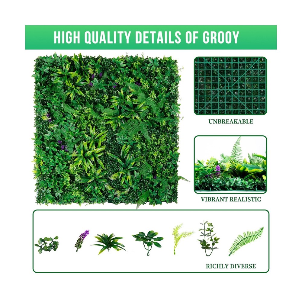 Artificial Boxwood Panels, Grass Wall Panels 20"x20"(12pcs), Privacy Hedge Fence Screen with UV Protection, Fake Greenery Backdrop for Indoor Wedding and Outdoor Garden Backyard Description Features: No Sparse, Unique Design, RealisticEven indoors, one can feel the connection to nature. Our fake grass wall panels provides an authentic and dense privacy hedge panels without any visible gaps. The realistic appearance of these decorative artificial grass panels adds a unique touch to your space. Premium Greenery, Built to LastGrooy Artificial Boxwood Hedge Panels are made tough, using the latest in High-Density Polyethylene (HDPE). No matter the blazing sun or stormy weather, they'll stay vibrant and lifelike, adding a touch of nature that lasts. Easy Assembly & CustomizationEach pack includes 12 pieces (20x20) with 40 zip ties, gloves, a plastic rod, and an installation guide for a quick and easy setup. No DIY skills needed. Customize panels effortlessly with basic cuts and shapes. Secure them using zip ties or drill for tougher surfaces. Versatile, Inside and OutThese artificial wall grass panels are versatile and suitable for both indoor and outdoor spaces. Perfect for porches, patios, backyards, living rooms, balconies, or office workspaces, they elevate the aesthetic appeal of any environment. Certified Safety and WarrantyGrooy's Greenery Grass Wall meets stringent safety standards for homes, gardens, and businesses. UV-tested for lasting quality, thus the artificial grass backdrop can be used outdoors and no fade. Product Details: Brand: Grooy Plant or Animal Product Type: Dracaena(plant) Color: Dracaena Material: High Density Polyethylene Product Dimensions: 22"D x 22"W x 10"H Brand: Grooy Plant or Animal Product Type: Dracaena(plant) Color: Dracaena Material: High Density Polyethylene Product Dimensions: 22"D x 22"W x 10"H Recommended Uses For Product: indoor and outdoor Specific Uses For Product: Home Decor, Hotel Decor, Office Decor Indoor/Outdoor Usage: Indoor Package Information: Box Number of Items: 12 Item Weight: 18.7 Pounds Room Type: Bathroom, Home Office, Living Room, Office Decor Container Material: Plastic Special Feature: UV Resistant Included Components: Gloves, Plastic rod, User's manual, Zip ties Item Package Quantity: 1 Shape: Square Unit Count: 12.0 Count Scent: Unscented Manufacturer: Grooy Item Weight: 18.7 pounds Item model number: 12 Size: 12PCS 20''x20'' Style: Art Deco Number Of Pieces: 12 Mounting Type: panels_and_mats Special Features: UV Resistant Batteries Included?: No Batteries Required?: No Date First Available: October 5, 2023 Delivery We Do Not Ship Outside of the Continental US. Return Policy All items qualify for returns within 30 days of receipt. Feedback We take our reputation seriously, we buy and sell online, so we understand the value of trust. If you are unsatisfied with your order, please contact us and we will work with you to resolve it to your satisfaction.