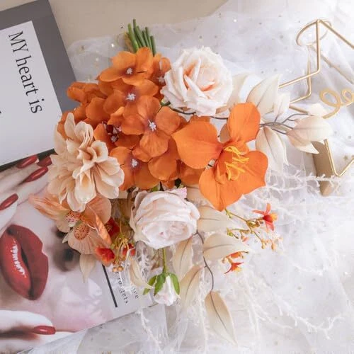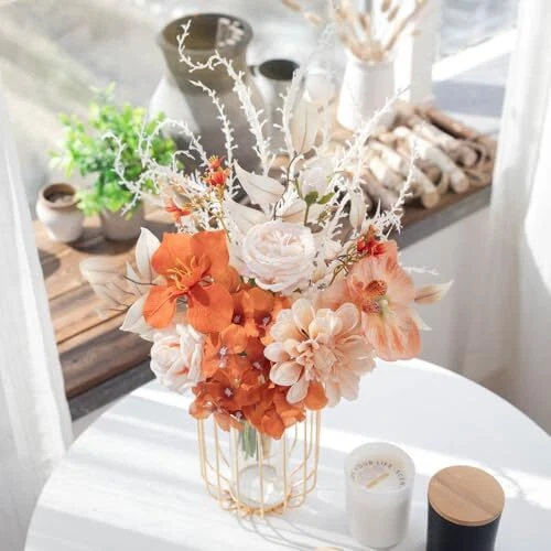 Artificial Fake Flowers Plants Silk Flower Arrangements Wedding Autumn Orange