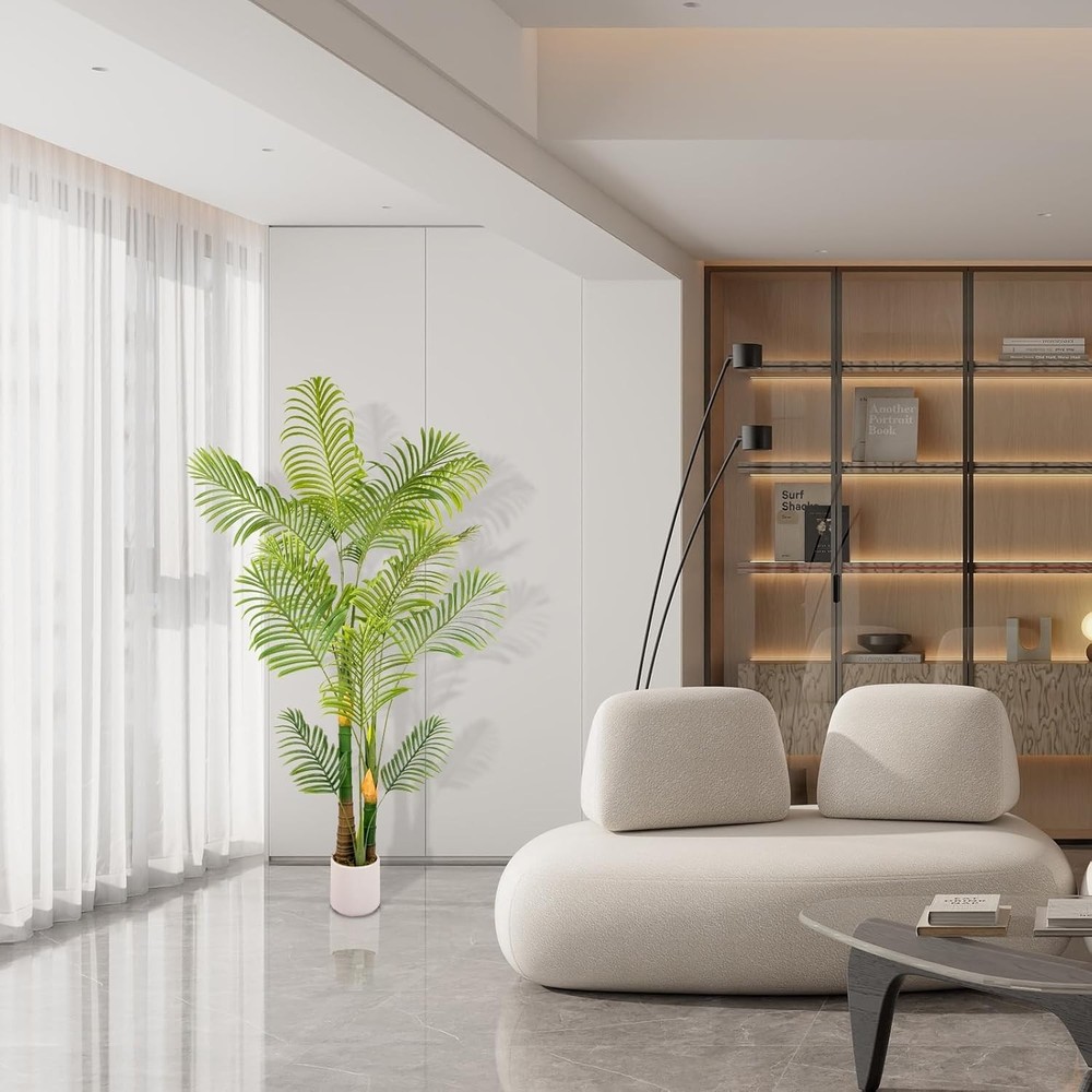 Artificial Fake Tree 🌞 Lush, Lifelike Greenery Without the Work - Say goodbye to watering, pruning, or sunlight! Real, natural wood branches are prone to mold and breakage, so this fake plants branches are not real wood, but made of premium plastic like true tree, bendable, flexible, environmentally friendly, clean, and not prone to mold no matter where they are placed, will not break due to adjustment of branches and leaves, and are fire retardant, stays fresh year-round. Ideal for busy lifestyles, simply wipe clean to maintain its vibrant appeal. 🌴 Luxury Artificial Palm Tree with Planter & Free Moss – Elevate your home decor instantly! ’s artificial palm tree arrives pre-potted in a sleek white planter, comes with free faux moss—no extra purchases needed. Perfect for patio decor, poolside lounging, or adding tropical vibes to room decor in living rooms, offices, or bedrooms. 🌿 Ultra-Realistic & Adjustable Design – Bend flexible fronds to craft your lush paradise! Our fake palm tree mimics natural texture with silk-green leaves, lifelike trunk grooves. Ideal for front porch decor or outdoor decor, its weather-resistant materials stay vibrant indoors or by the pool. 🏡 Versatile Indoor/Outdoor Statement – From faux plants indoor elegance to fake palm trees for garden parties, this beauty thrives everywhere. The weighted cement-filled base prevents tipping, while UV-treated leaves ensure artificial palm trees for outdoors stay photo-ready for years. 🎁 Instant Oasis & Perfect Gift – Transform spaces into vacation escapes! Pair with string lights (not included) for magical patio decor or gift as home decor for housewarmings. A hassle-free fake plant that brings Bali to your balcony—no green thumb required!