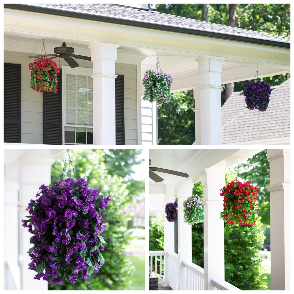 BEAUTIFUL HANGING FLOWERS: artificial hanging orchid flower has rich blossom and leaves filled in a handmade cone shape rattan basket. SIMPLE ASSEMBLY: artificial hanging plant needs 5 minutes to assemble. Simply place the silk flower branches to the basket and design the shape. Please refer to the pictures or video listed above if you need further instruction. PACKAGING: The beautiful faux hanging silk flower basket comprises of a cone-shaped basket with metal chains and 4 branches of orchid artificial flowers. Each hanging branch has forks of flowers and dark green leaves. GOOD QUALITY: The hanging basket and artificial flowers were made of good quality material that don’t require maintenance after assembly. It’s UV resistance and won’t fade, sturdy enough for any weather. No watering needs. ARTIFICIAL GREENERY DECORATION: The fake hanging flower in a basket looks real and stylish, making it the perfect hanging basket for your home, patio, balcony, garden, indoor and outdoor. It blooms all year and adds a sense of spring to your home.