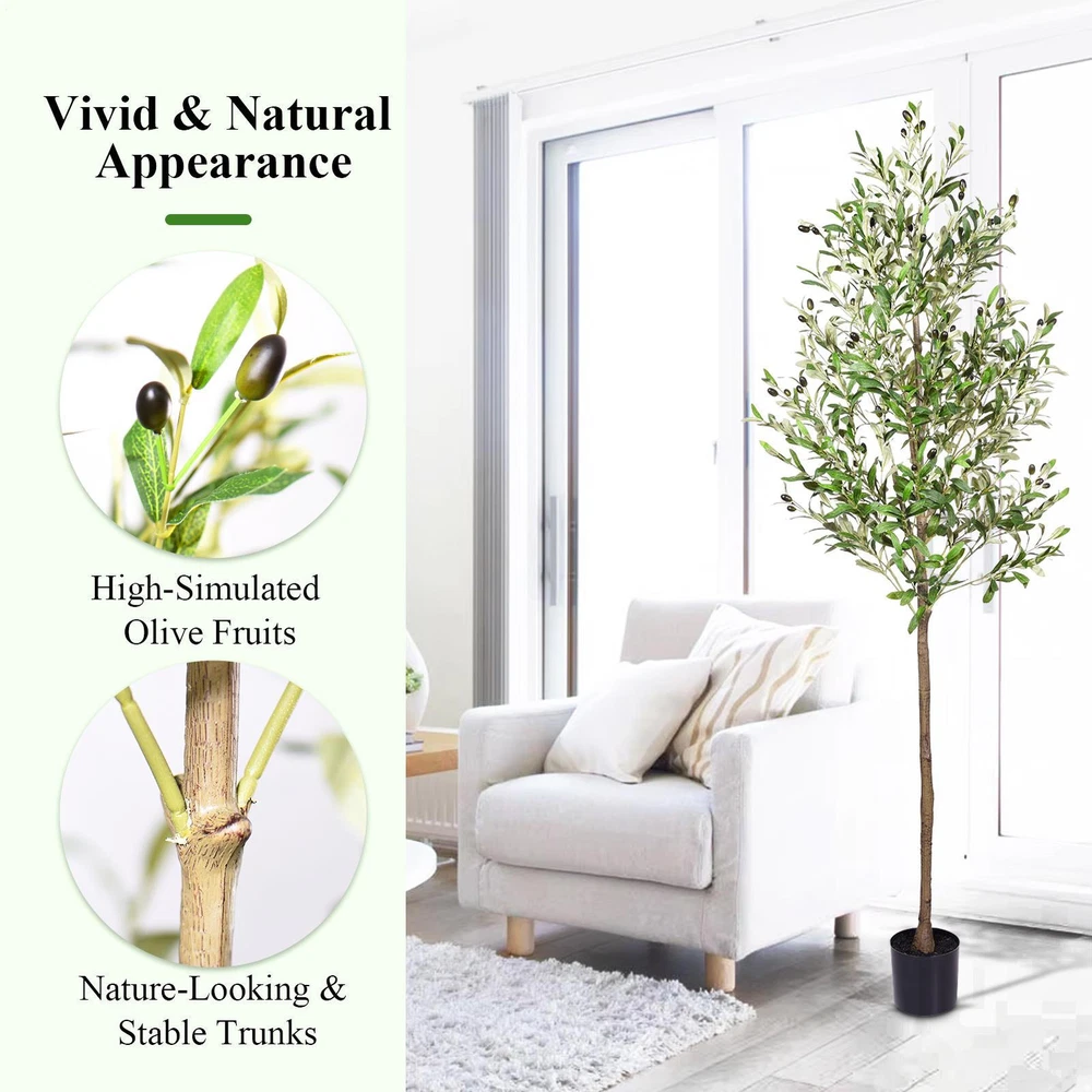FREE SHIPPING 30 DAYS GUARANTEE PREMIUM QUALITY GOOD SERVICE Description Bullet Points: Easy Maintenance: Keep your faux olive plant looking perfect with no water, light, or special care required. Just remove dust occasionally and save time and effort with easy maintenance All-Purpose Ornament: Bring life to any space, be it your home, a mall, a terrace, or a hotel with this multi-functional faux olive plant suitable for both indoor and outdoor use, making it an all-purpose ornament for any setting Easy to Adjust: Effortlessly reproduce the beauty of nature with this lifelike faux olive plant. Its malleable branches can be easily tuned to fit your desired arrangement set in a decorative flower pot. Assembly is a breeze, perfect for home decorating Safe to Use: Enjoy the beauty of this tasteful faux olive plant, while ensuring your family's safety. Designed to be secure and friendly to children and pets, it is the perfect choice for enhancing your home decor with indoor artificial trees Realistic Design: Spruce up your living space with the stunningly realistic faux olive plant featuring silk leaves and lifelike fruits. Create a natural ambiance that uplifts your home decor with ease Enhance your indoor space with this realistic fake olive plant. Low maintenance and easy to assemble, it brings vivid green to your décor. Safe for all and perfect for outdoor spaces. Specification: Product size: A about 6FT/180cm B about 7FT/210cm Color: green Materials: silk, PP composite materials Packing List: 1* Faux olive plant Notes: 1. Consider the size and decorative style to achieve the best decoration effect when placing the position. 2. Clean the dust on the artificial plant regularly to maintain its fresh and clean appearance. 3. Due to different lighting and screen settings, the item color may be slightly different from the picture. 4. Due to different manual measurements, please allow a 1-2cm difference in size. SHIPPING 1. The shipping rates listed are only for residential or commercial destinations in the continental 48 United States. All international sales will go through eBay Global Shipping Program.please ask us if there are any questions. 2. We only ship the item to the address that is sent to us at the time of checkout. Please verify the correct shipping address in your PayPal account before making your payment. If we ship your item to an old or invalid address and you are not able to locate the item, we are not responsible for shipping a replacement. 3. Currently, we do not ship to Hawaii, Alaska, Puerto Rico,APO/FPO/PO Boxes. 4. We use USPS & FedEx as shipping method. PAYMENT 1. We accept PayPal and all forms of credit card. 2. We will only ship to the confirmed Paypal shipping address given with the payment.responsible for shipping a replacement. 3. We do not offer local pick up service. RETURN 1. 30 days Money Back Guarantee. All of our products come with a return period of 30 days from the date of original delivery. 2. If any package that needs to be returned, please contact our customer service first to receive a RMA form. 3. All return items MUST be in brand new condition. 4. If you are not completely satisfied with your purchase or no longer need the item (if unopened) within the 30 days, we will assist you with a return for full refund minus a 20% processing fee. 5. If there is an issue of damage, please send us pictures through mail. Depending on the damage, we will take further action to solve the problem as soon as possible. 6. Please do not ship any goods to any address without our authorisation as it might lead to you not receiving your refund. [Please do not initiate a return without our authorisation as this could result in a delay in issuing your refund.