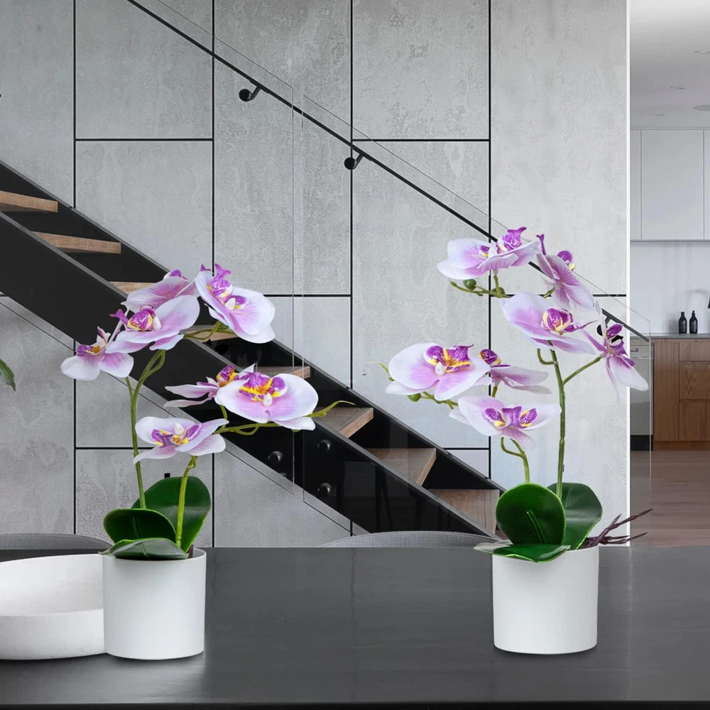 HomeArtificial Orchid Flowers in Plastic Vase 2-Piece Set for Table Decor
