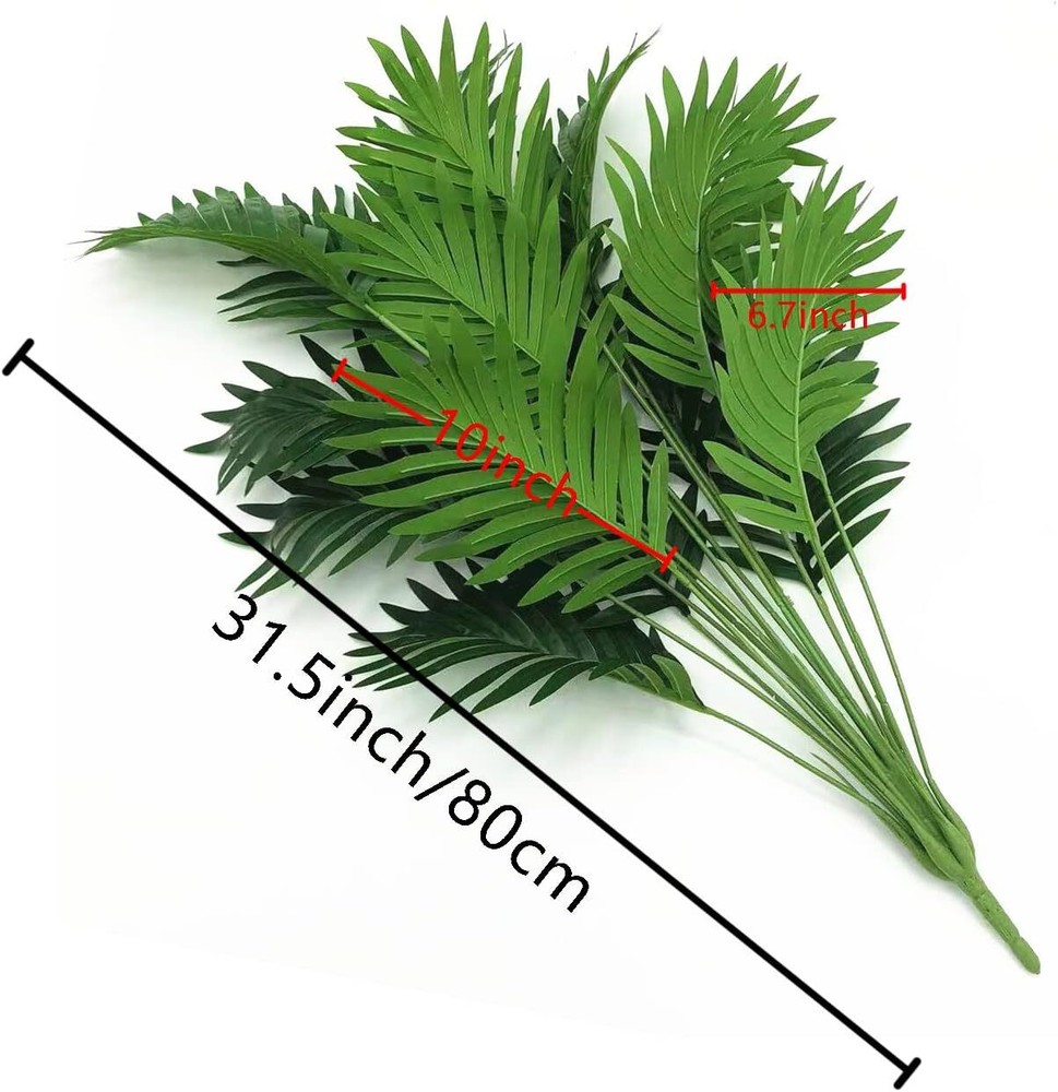 Artificial Palm Faux Plant Fake Tree Tropical Leaf Bush Plastic Greenery Large A Size: Each tropical palm stem size: 32" Length, each palm bunch has 18 flexible stems and bushy leaves.. Adding a great pop of greenery to your space. USE:Palm There is iron wire inside the stem, after you got the items, please adjust the shape, the Palm Leaves will be in good shape as the pictures. Quality: Artificial areca are made of high-quality plastic. Beautifully made, colorful, and looks very realistic. Ideal for landscaping or home decoration. Fake tropical palm plant UV resistant:Our artificial plant UV resistant. Artificial areca palm can survive in hot environments,and even under intense sunlight.These artificial plants Never fade. VARIETY OF USES and REUSES:These Palm Leaves are Ideal for Hawaiin Party , Tropical Party Decorations , Tropical Island. Jungle Party Supplies , Palm Leaves Pool party , Wedding Palm Leaves Decorations , Restaurant Décor , Craft Supplies , Concession Stands , Juice bars , Fast Food Shop , Birthday Party , Baby Shower Decorations. Shipping We offer FREE shipping on all orders! We ship within Three business days of payment, usually sooner. We use a selection of shipping services such as UPS, FedEx, USPS etc. We only ship to the lower 48 states, no APO/FPO addresses or PO Boxes allowed. Local pickups and combined shipping options are not provided at this time. Return You can return a product for up to 30 days from the date you purchased it. Any product you return must be in the same condition you received it and in the original packaging. Please keep the receipt. Customer satisfaction is very important to us. If you have any problem with your order, please contact us and we will do our best to make you satisfied. Contact Us If you have any queries, please contact us via ebay. We usually respond within 24 hours on weekdays. Please visit our eBay store to check out other items for sale! Thank you for shopping at our store.
