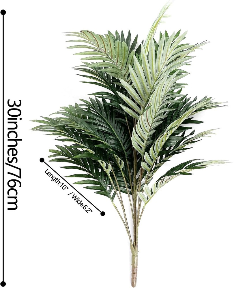 Artificial Palm Tree Plants 30" Tall UV Resistant Tropical Areca Plant Faux New Item Package Quantity:1 Plant or Animal Product Type: Palm Color Green Material: Plastic Product Dimensions: 15"D x 20"W x 30"H Tropical Party Decorations:These tropical leaves are great decors for Luau Parties,Tropical Hawaiian,Safari Party,Beach Theme,Wedding,Birthday,Jungle Theme,Aloha,TIKI Parties. High Quality Palm Leaves:These artificial palm leaves are made of soft lightweight fabric material,durable and reusable.Natural leaves design,look like REAL tropical leaves. Table Home Decorations:Put these palm leaves into a vase or stick some leaves onto the wall, A great Decorator for your Table,Desk,Bookshelves,Cabinet.Make you and your guest feel like in tropical paradise. Package Include: 1 pcs Palm Leaves.Size: Each tropical Areca palm stem measures appr 30" tall . Material: Made of plastic and bendable wire insi NO MAINTENANCE REQUIRED - no need trim and watering for people who have a busy schedule or but want to enjoy the overflowing of greenery in office, conference hall as the tabletop plants or floor plants. Return Policy: We offer a 30 day return policy from the receiving date. Please contact us for a Free Return Label. Please use our return label so it will go back to our supplier and we can do a refund or replacement afterwards. Feedback: Your satisfaction is very important to us! If you have any problem with your order, please contact us and we will do our very best to make you satisfied. As long as you are happy with your purchase, please leave a positive feedback for us. We will always leave you a positive feedback in return. If you have any problem with your purchase, please do not leave a negative feedback. Please Contact us ... and your issue will be solved quickly and positively We are a small family-owned business trying to make a living, not a huge company that does not care ... We will ALWAYS do our best for you!