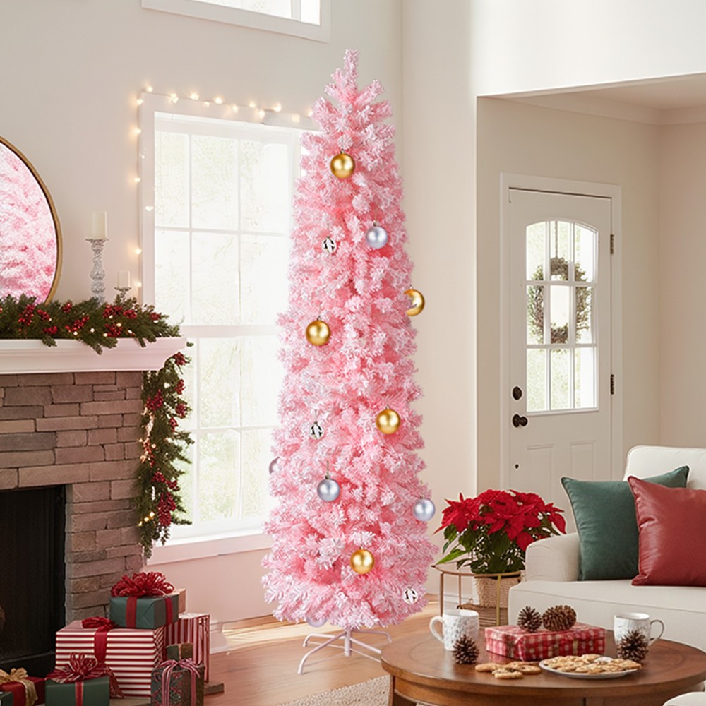 Artificial Pencil 7.5FT Pink Christmas Tree 641 / 1075 Branch Tips, Sturdy Stand