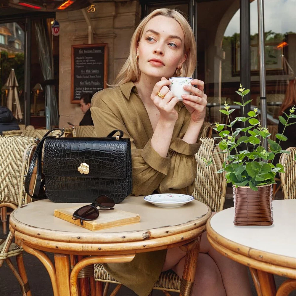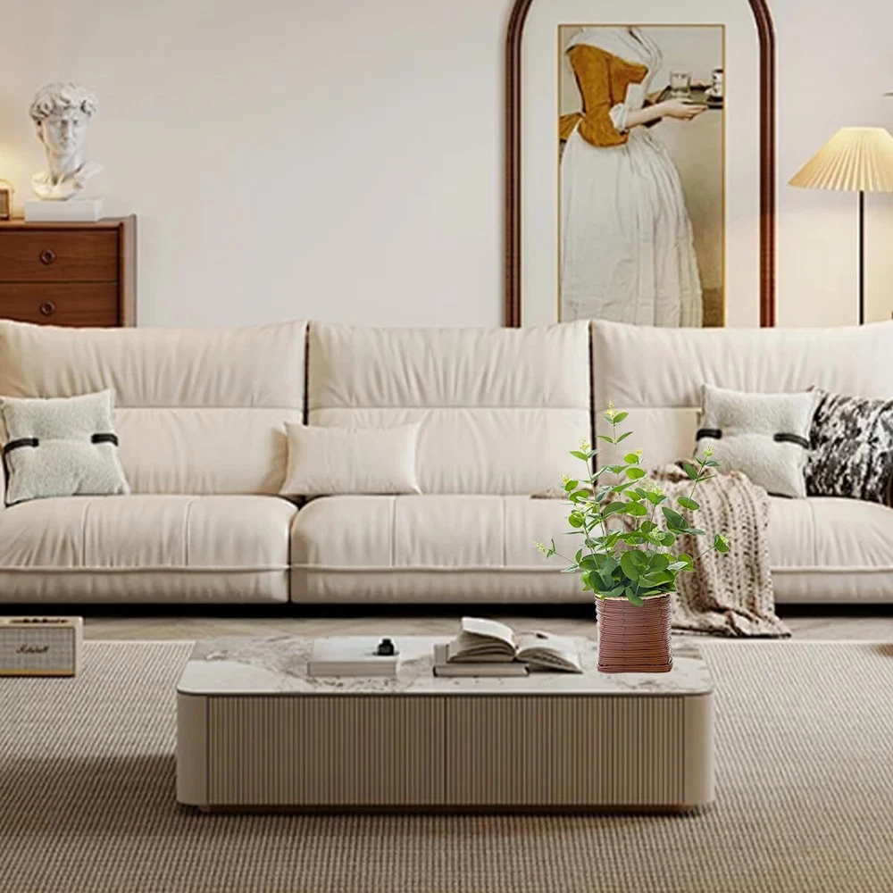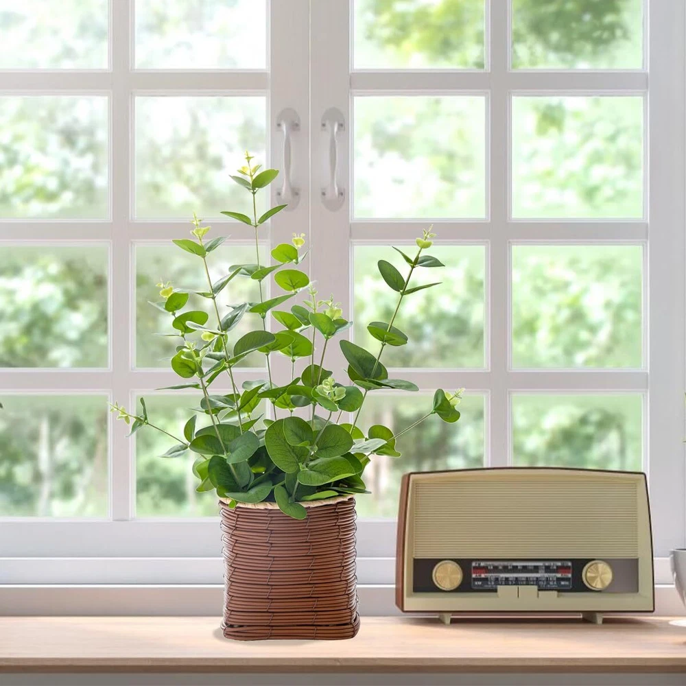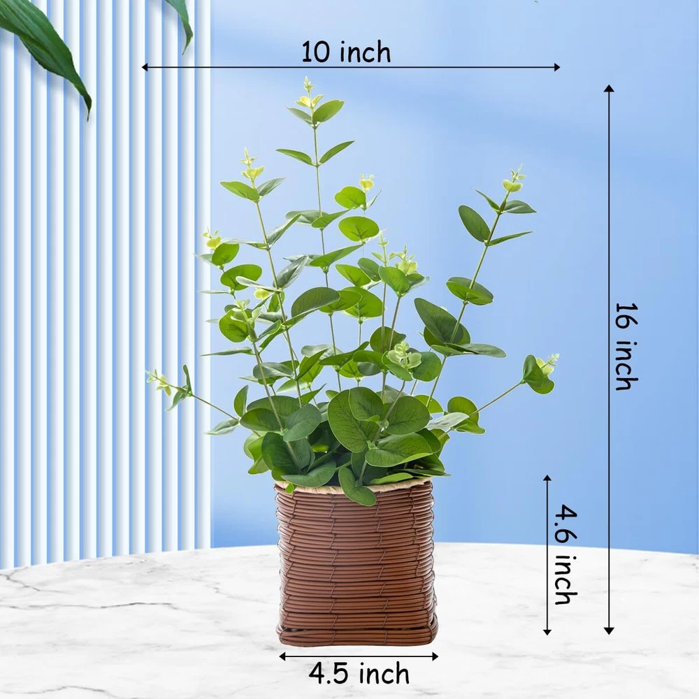 【Why Choose Our Artificial Eucalyptus Plant?】: Crafted with meticulous attention to detail, our artificial eucalyptus plant boasts three distinct leaf shades that bring life and sophistication to any setting. Each branch is designed to mimic the texture and appearance of real eucalyptus, with thick, lifelike leaves that feel natural to the touch. The flexible branches can be easily shaped and customized, making it ideal for adding a touch of nature to your home decor. 【Perfect Size for Any Space】: Measuring 10 inches wide and 16 inches tall, this artificial potted plant fits perfectly on desks, shelves, windowsills, or countertops without taking up too much room. The faux leather pot, which measures 4.5 inches wide and 4.6 inches tall, adds a stylish touch to the overall design. 【Safe and Reliable Materials】: Made from environmentally safe materials, our artificial eucalyptus plant is crafted with silk fabric leaves, plastic, and iron wire branches. It’s safe for use around children and pets, ensuring that your home remains a healthy environment. The exquisite realism and durability of the branches make this plant a long-lasting addition to your decor. 【Low-Maintenance Beauty】: Enjoy the lasting beauty of our artificial eucalyptus plant with minimal effort. Simply reshape the plant after removing it from the secure packaging to achieve its lush and vibrant form. Maintain its appearance with an occasional wipe using a soft, dry cloth, and it will continue to enhance your space for years to come. 【Versatile Decor Options】: Whether you’re going for a rustic, modern, or nature-inspired look, our artificial eucalyptus plant is the perfect accent piece. Use it as a stunning table centerpiece, or combine it with other artificial flowers to create a varied and textured display. Its versatility makes it a must-have for any decor enthusiast.