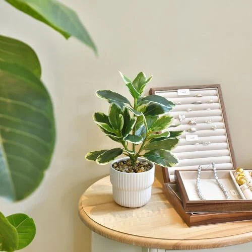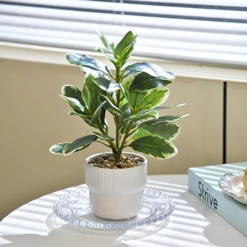 30 Days Return Policy Fast Delivery Trusted seller Artificial Potted Rubber Plant with White Ceramic Pot Variegated Rubber Tree for Indoor Office Bathroom Home Décor Product Description [Package Includes]: You will get 1 pack artificial plant potted plants, including white ceramic vase. Item in total 11" H and 8" W, the ceramic pot size 3.6" H and 4.7" W. Our fake plants are harmless to the human body, durable, and do not fade. [Look Realistic & Lifelike]: The leaves are made of high-quality plastic, and the texture of the leaves is delicate and glossy, with lifelike appearance. Luxuriant branches and leaves, full of vitality and vigor. This artificial plants are looking real and elegant. [Easy to Maintain]: Our faux plant for home decor no maintenance, doesn't require add water and trim, always neat and clean! No assembly required, can be opened and used, very convenient. This green plant perfect for the all seasons, very suitable for people who love nature. [Wide range of placement methods]: Green plants are perfect for displaying in homes, offices, fireplaces, farmhouses, dining tables, bookshelves, or any other area that requires green decoration. Simply place it in the position you want, and it will make the environment elegant. [Perfect Decoration]: Artificial potted plant are suitable for both outdoor and indoor use, and you can place them anyw you want, adding a touch of green vitality to you. They are also excellent gifts for housewarming parties, weddings, and holidays. Shipping Returns Payment Shipping Shipping is FREE to all addresses other than APO/PO boxes in the lower 48 states. All our stock ships from US-based warehouses. Shipped via USPS or UPS (depending on location and package weight) Unless stated otherwise, all orders will ship within 24-72 hours of your payment being processed. Check our feedback to see the great reviews of FAST shipping we offer. Returns As our valued customer, we will do our best to make sure the product you receive arrives to you on time and as expected. If you are not satisfied with your purchase, please contact us within 30 days of receiving your order to process a return. Payment We currently accept payment via eBay managed payments only. Once payment is cleared, we will dispatch your shipment within 1-3 business days. Please refer to the "Shipping" tab for more information regarding shipping speed to your destination.
