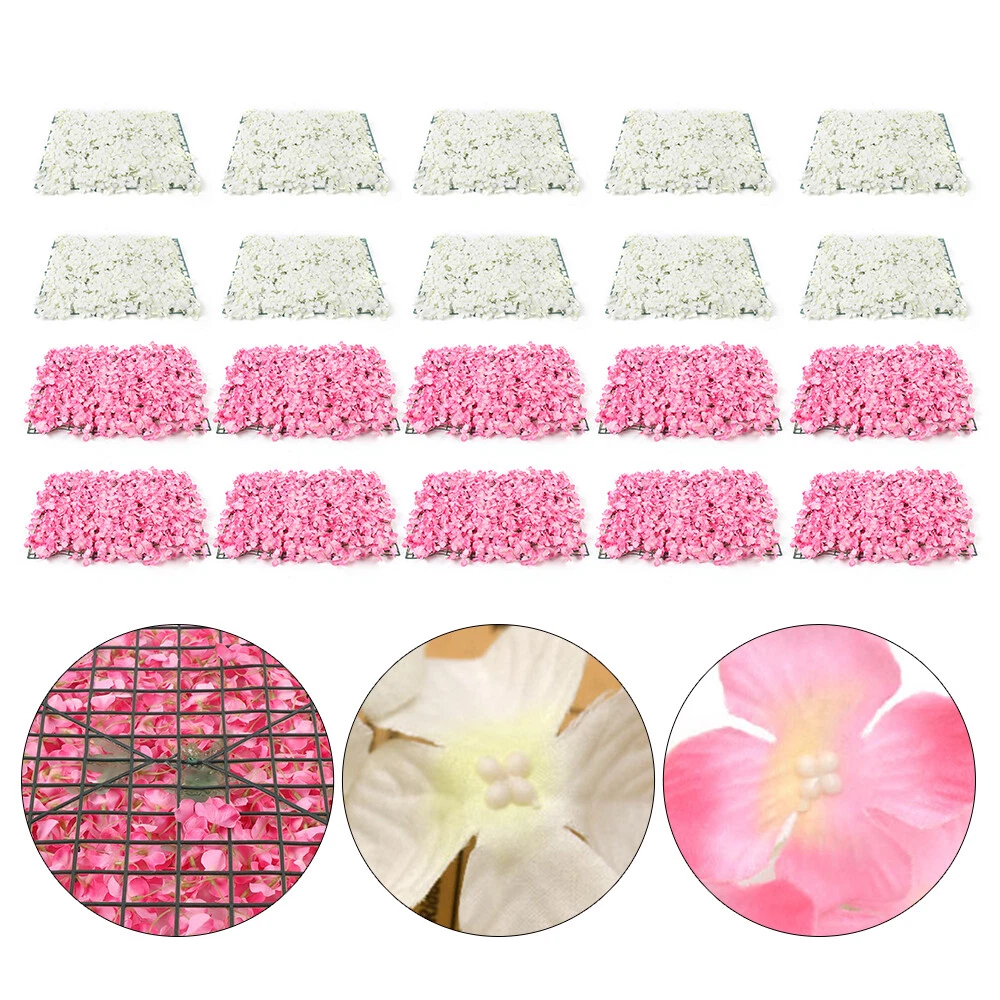 Artificial Silk Flower Wall Panel Wedding Background Decor White/Pink 10/20pcs