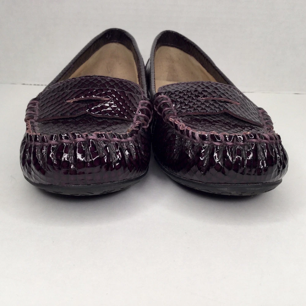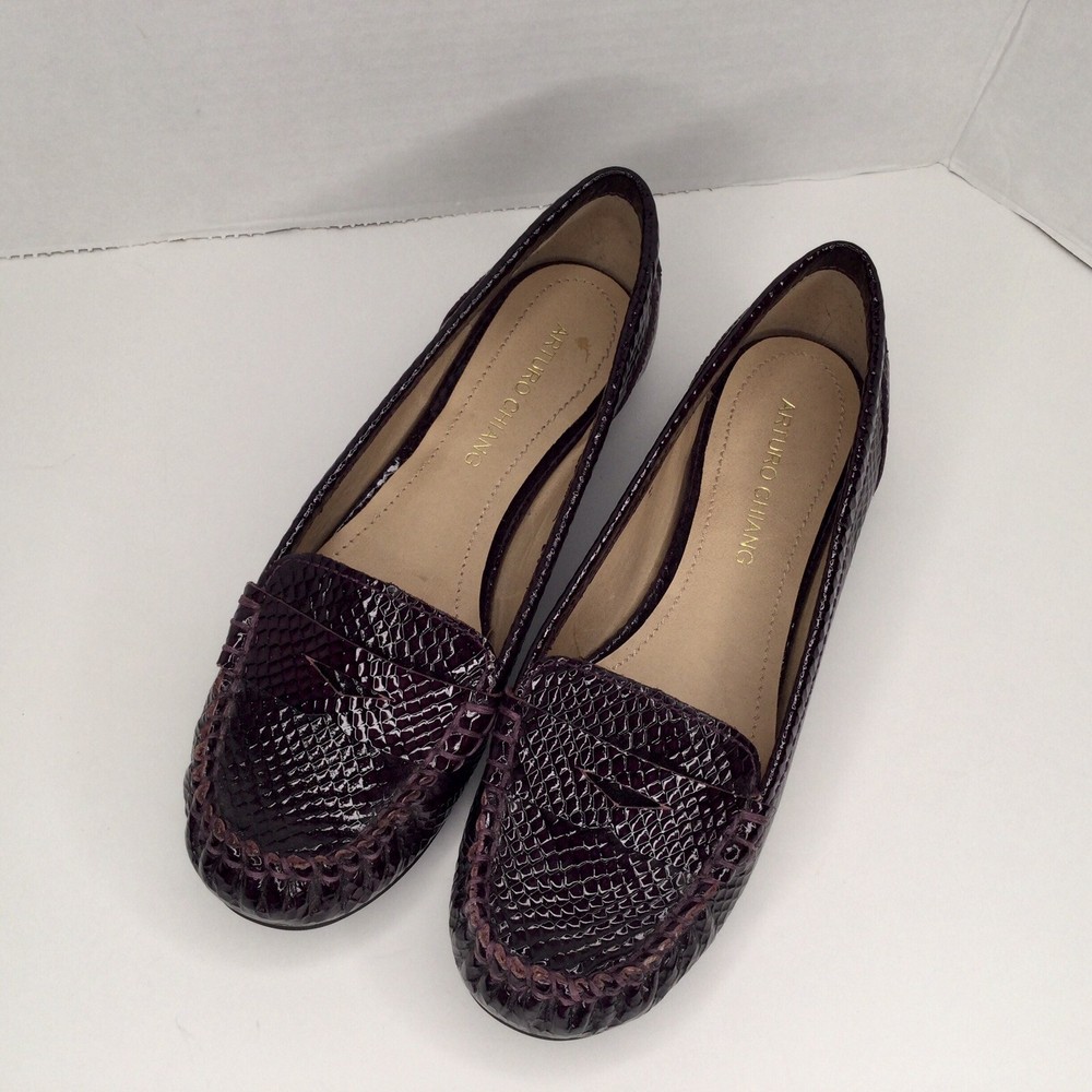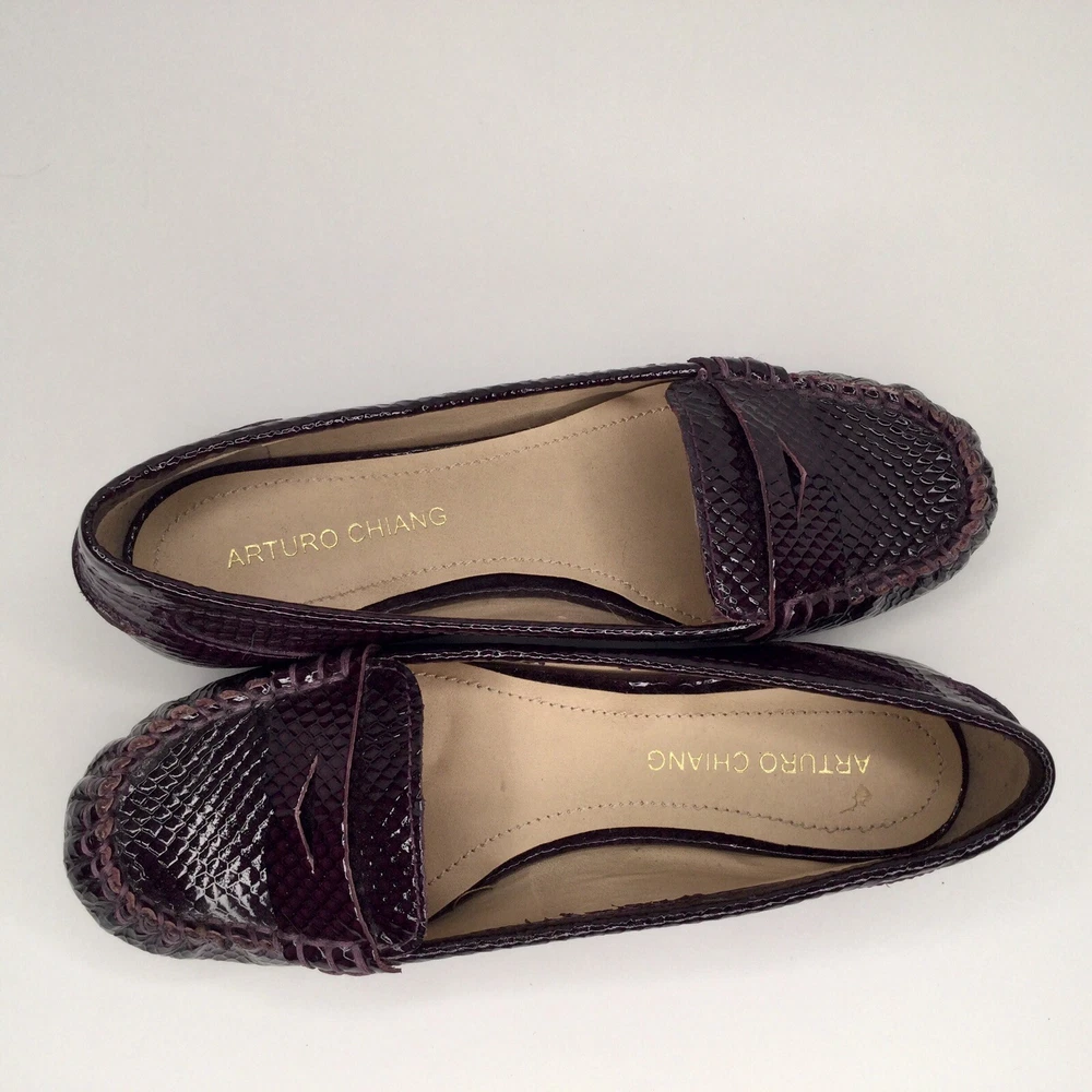 Arturo Chiang Size 7.5 Leather Upper Penny Loafers Dark Purple Patented Leather. Shipped with Canada Post Regular Parcel.