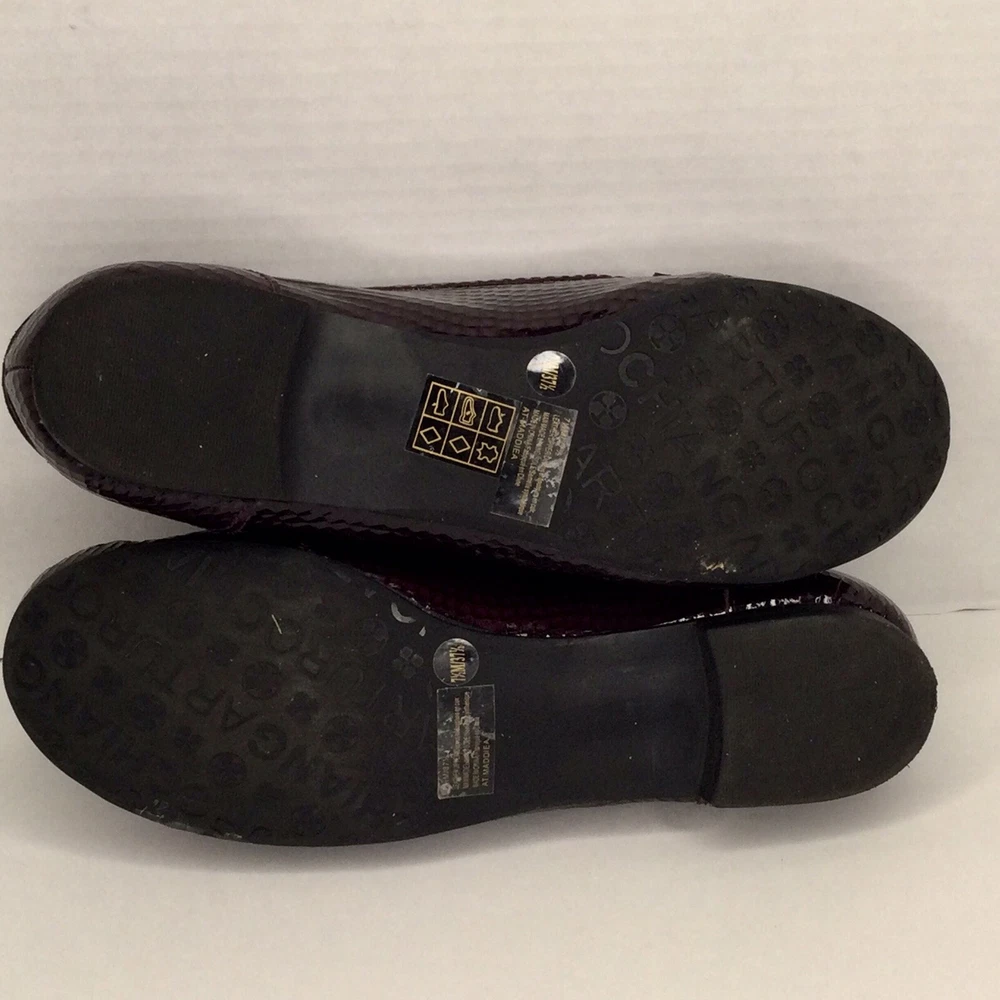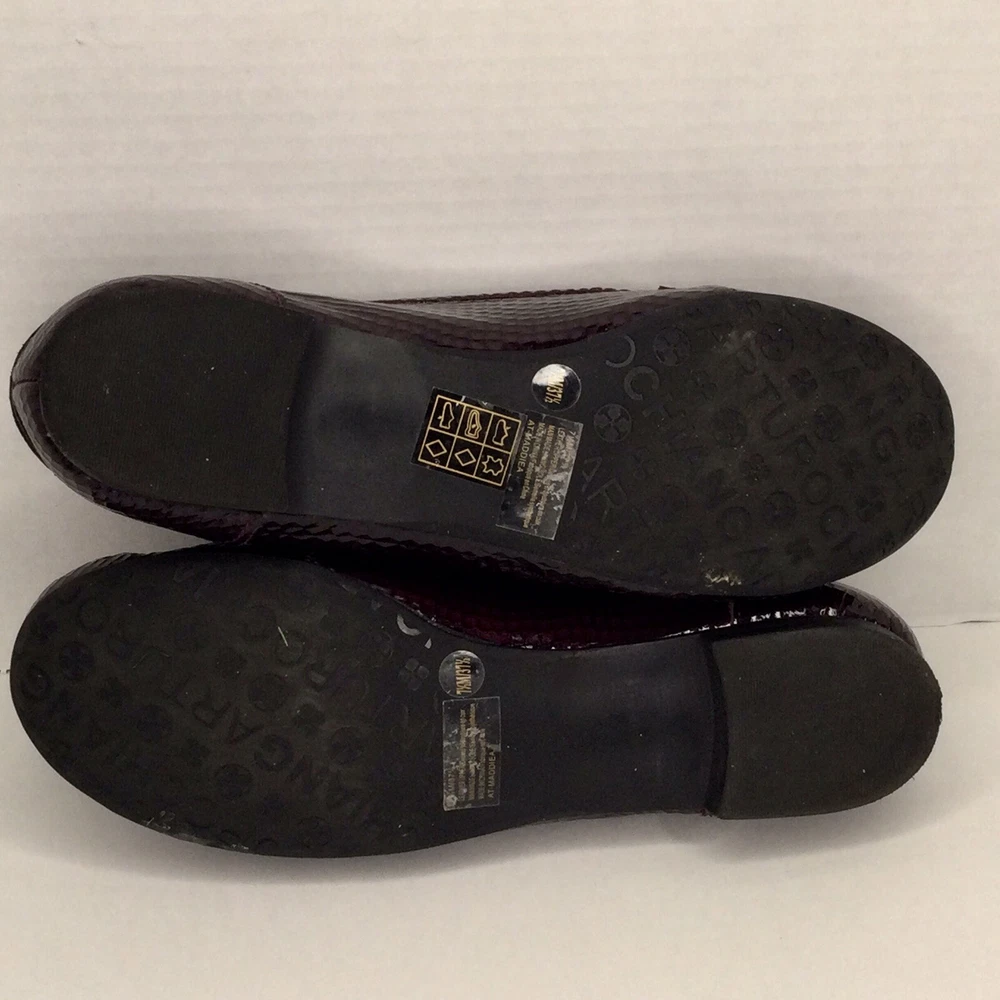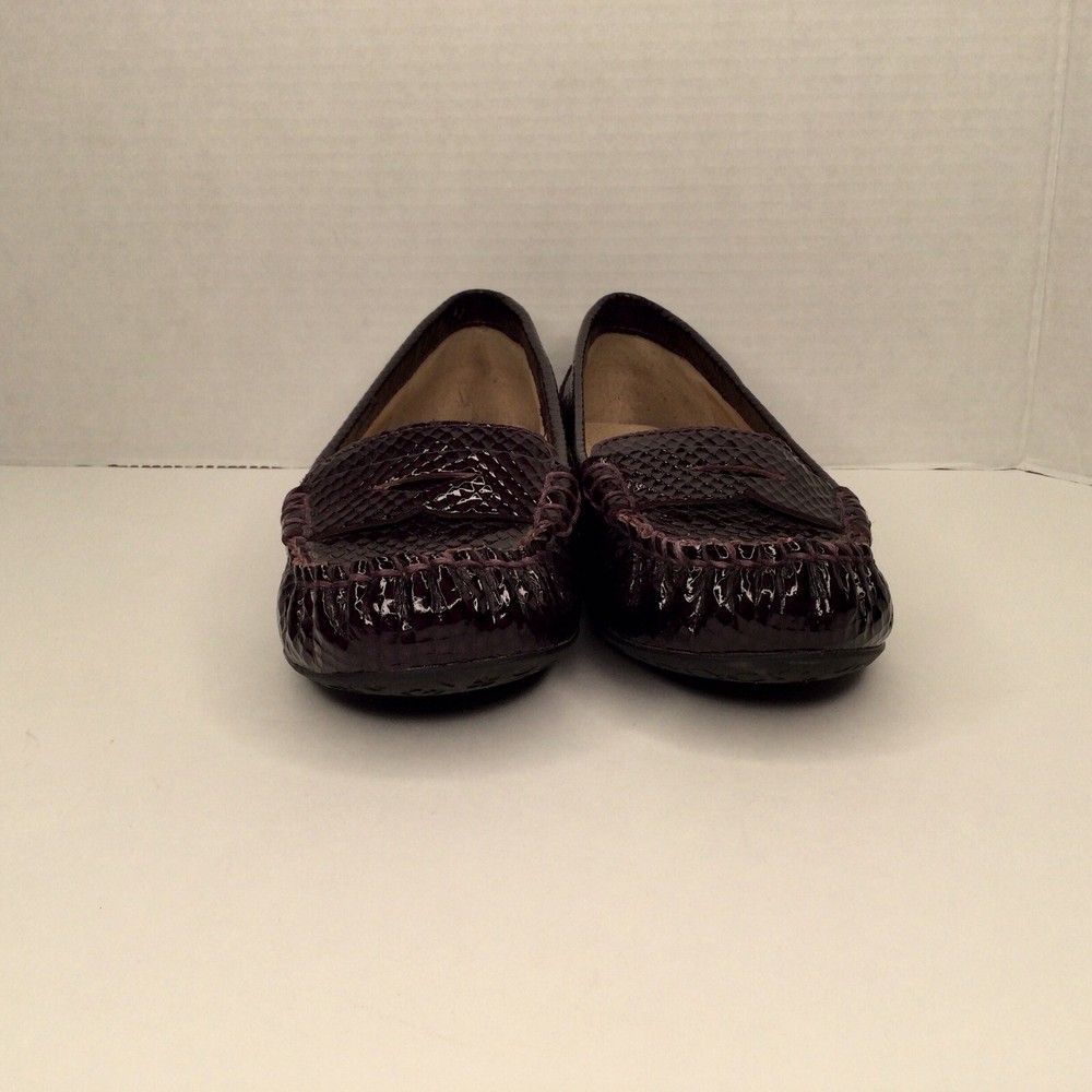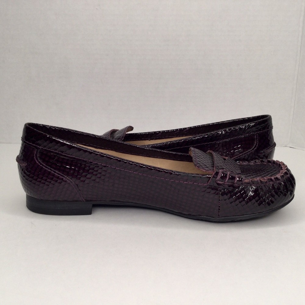 Arturo Chiang Size 7.5 Leather Upper Penny Loafers Dark Purple Patented Leather. Shipped with Canada Post Regular Parcel.
