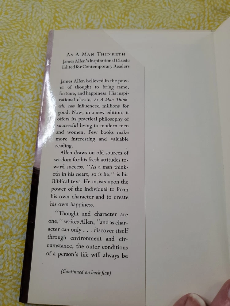 THANK YOU FOR VISITING OUR STORE. WE SHIP 6 DAYS A WEEK (UNLESS THERE IS A FEDERAL HOLIDAY). MOST ITEMS WILL SHIP IN A STURDY BOX AS NEEDED. PLEASE FEEL FREE TO REACH OUT IF YOU HAVE ANY QUESTIONS. WE WILL COMBINE SHIPPING WHEN AVAILABLE. This hardcover edition of "As A Man Thinketh" by James Allen is a vintage piece published by Hallmark in 1968. The book is written in English and has 56 pages, with a dust jacket included. It falls under the category of self-help books and is a great addition to any book collection. The edition is a Hallmark Edition, with the publication year and format being unknown. The book is a valuable find for those interested in vintage literature and self-improvement.